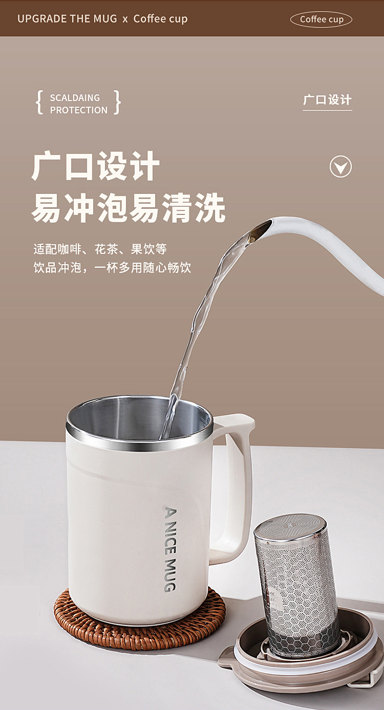 차 배수구가있는 304 스테인레스 스틸 머그잔 더블 드링크 커피 컵 간편한 선물 우유 컵 크리 에이 티브 광고 마시는 컵