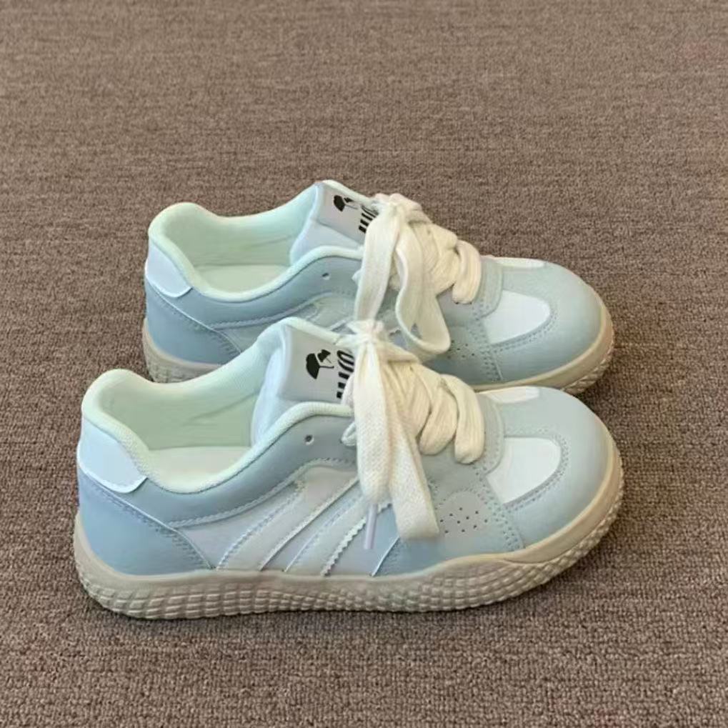 니치 한국식 통기성 핑크 독일 훈련화 새로운 세련된 운동화 2025 년 봄 여성 스포츠 가죽 흰색 신발
