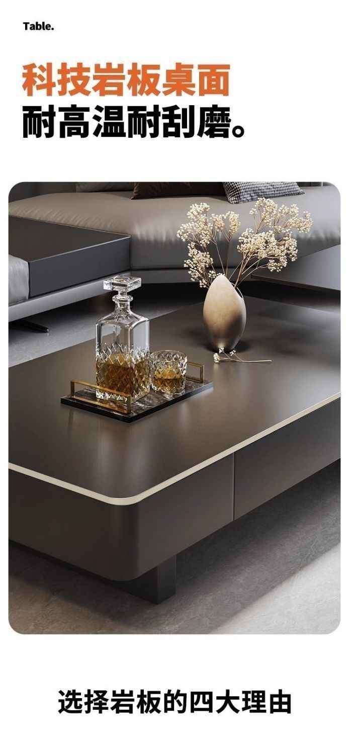 2025 새로운 스타일의 커피 테이블 거실 직사각형 암판 커피 테이블 작은 아파트 현대 간단한 거실 홈 티 테이블