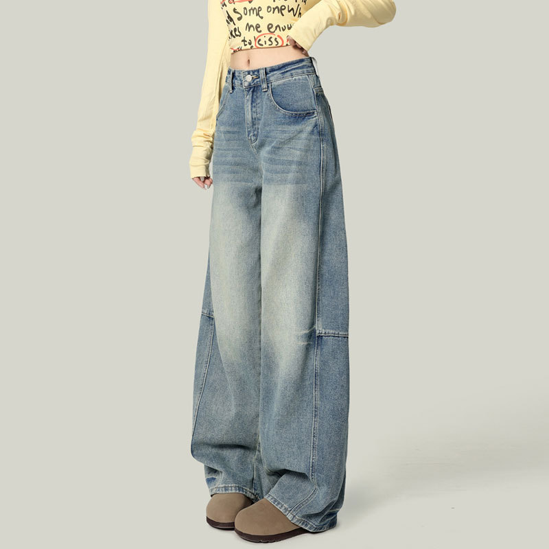 라이트 블루 Scythe Jeans 여성의 새로운 걸레 통통녀 아메리칸 스타일 와이드 레그 플러스 사이즈 느슨한 스트레이트 시미 터 팬츠 투약스토어 가기
