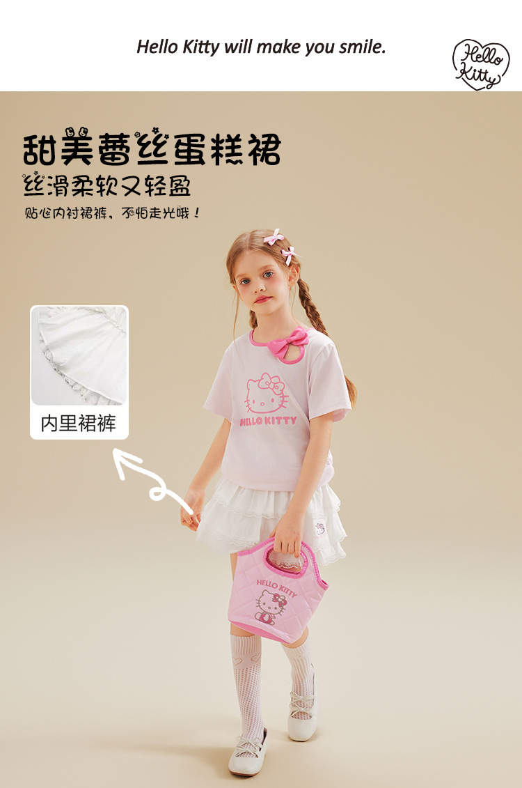 헬로 키티 헬로 키티 소녀 여름 스커트 2025 새로운 방황혼 달콤한 케이크 스커트 외국 스타일 스커트스토어 가기