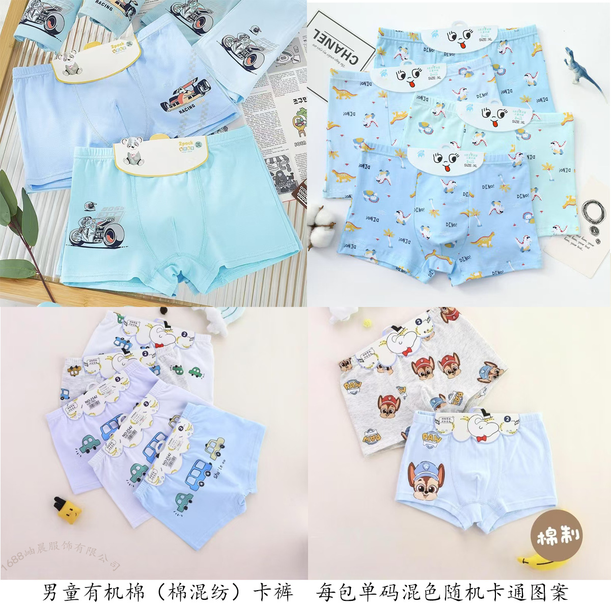 男女童有机棉内裤面料为棉混纺 卡通图案和卡头随机发货