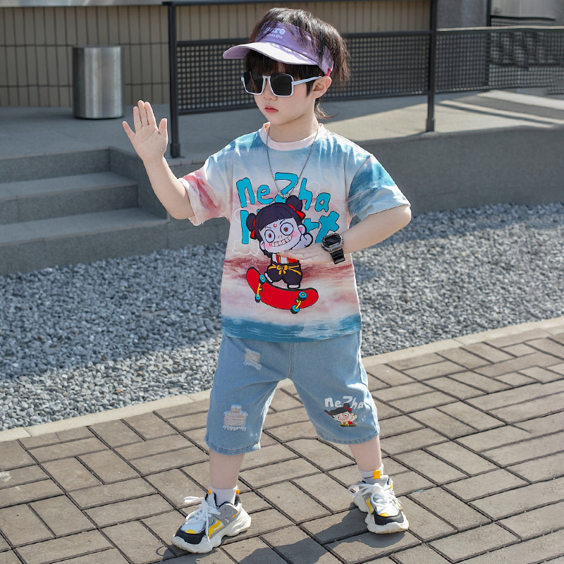 소년 Nezha 세트 여름 2025 새로운 아기 서양 스타일 여름 옷 소년 스포츠 짧은 소매 옷 투피스 유행 세트