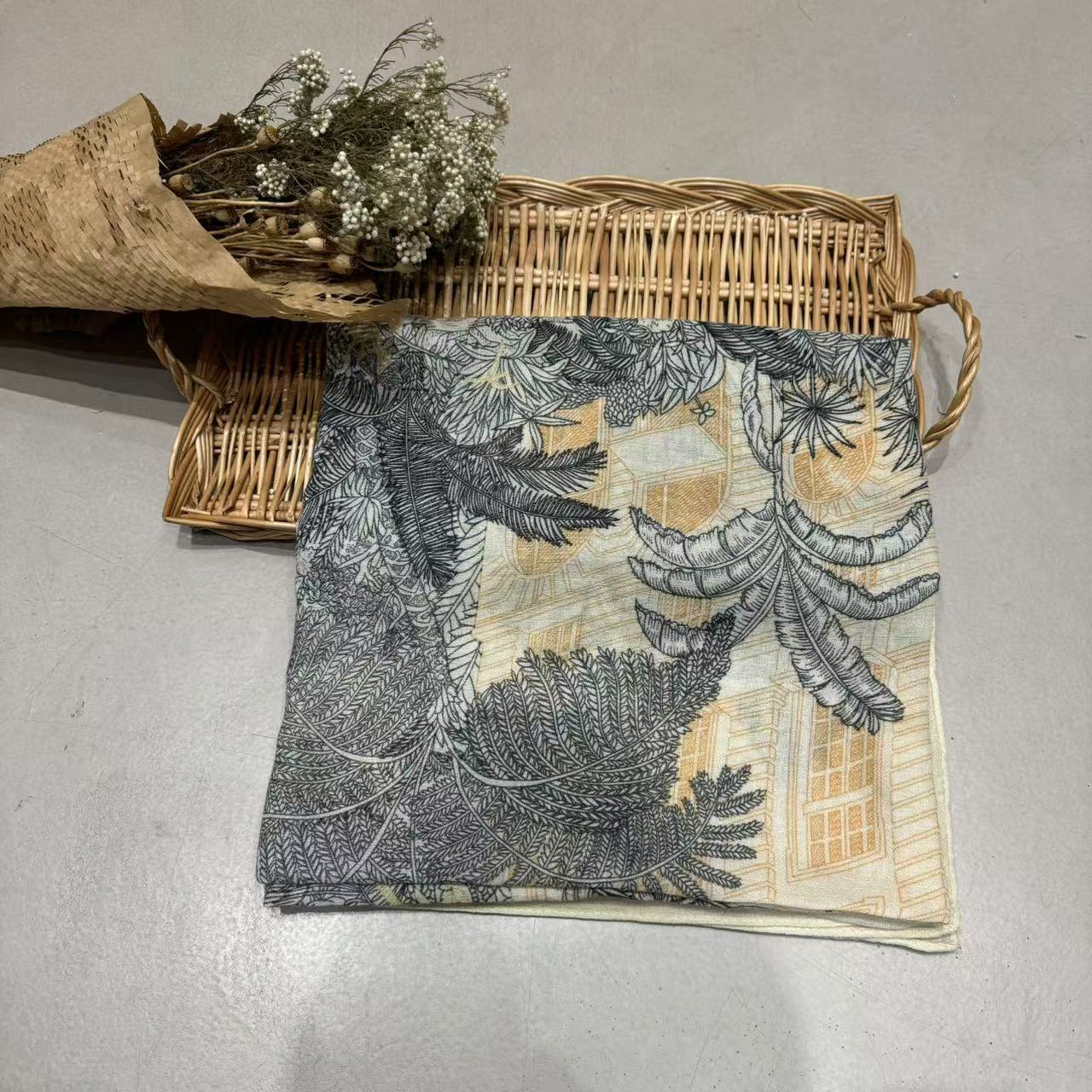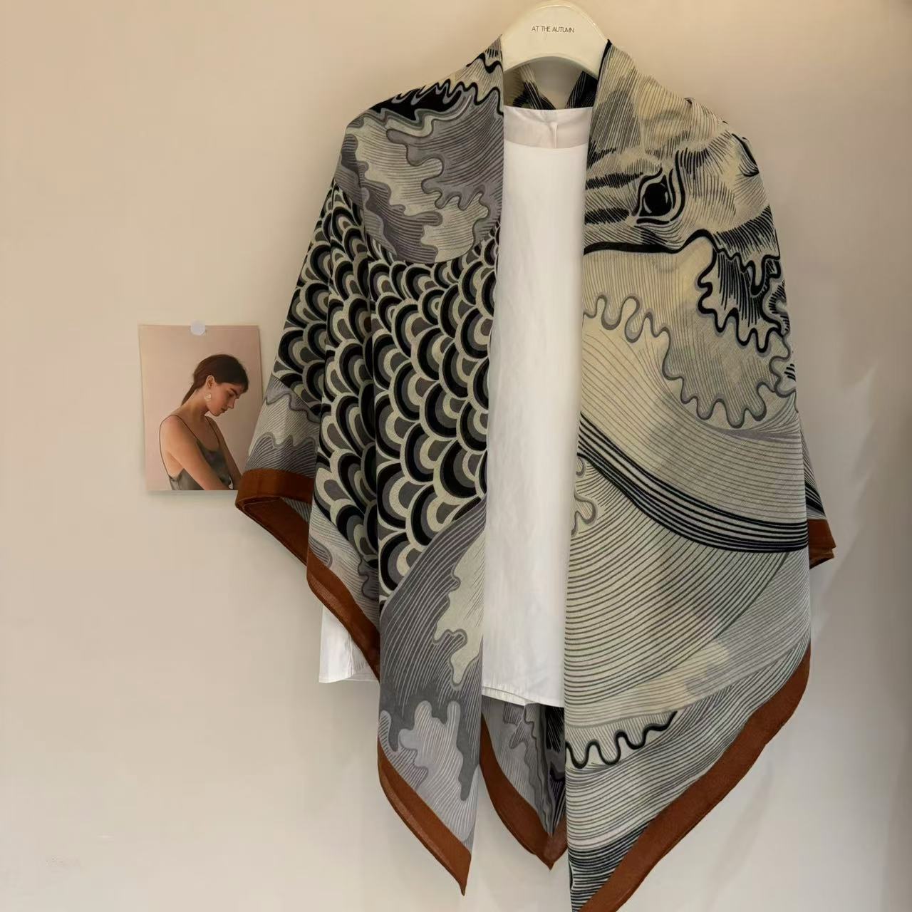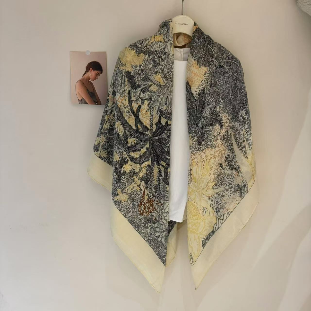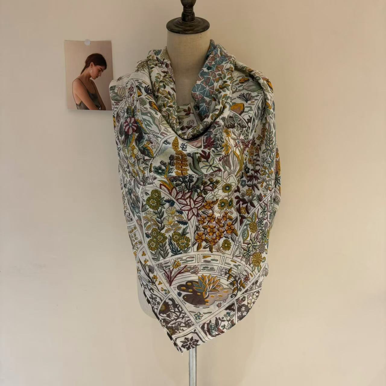 유럽 여름 130*130 대형 사각형 스카프 유화 꽃 인쇄 면화 실크 스카프 여성 가을, 겨울 한국 스타일 장식스토어 가기