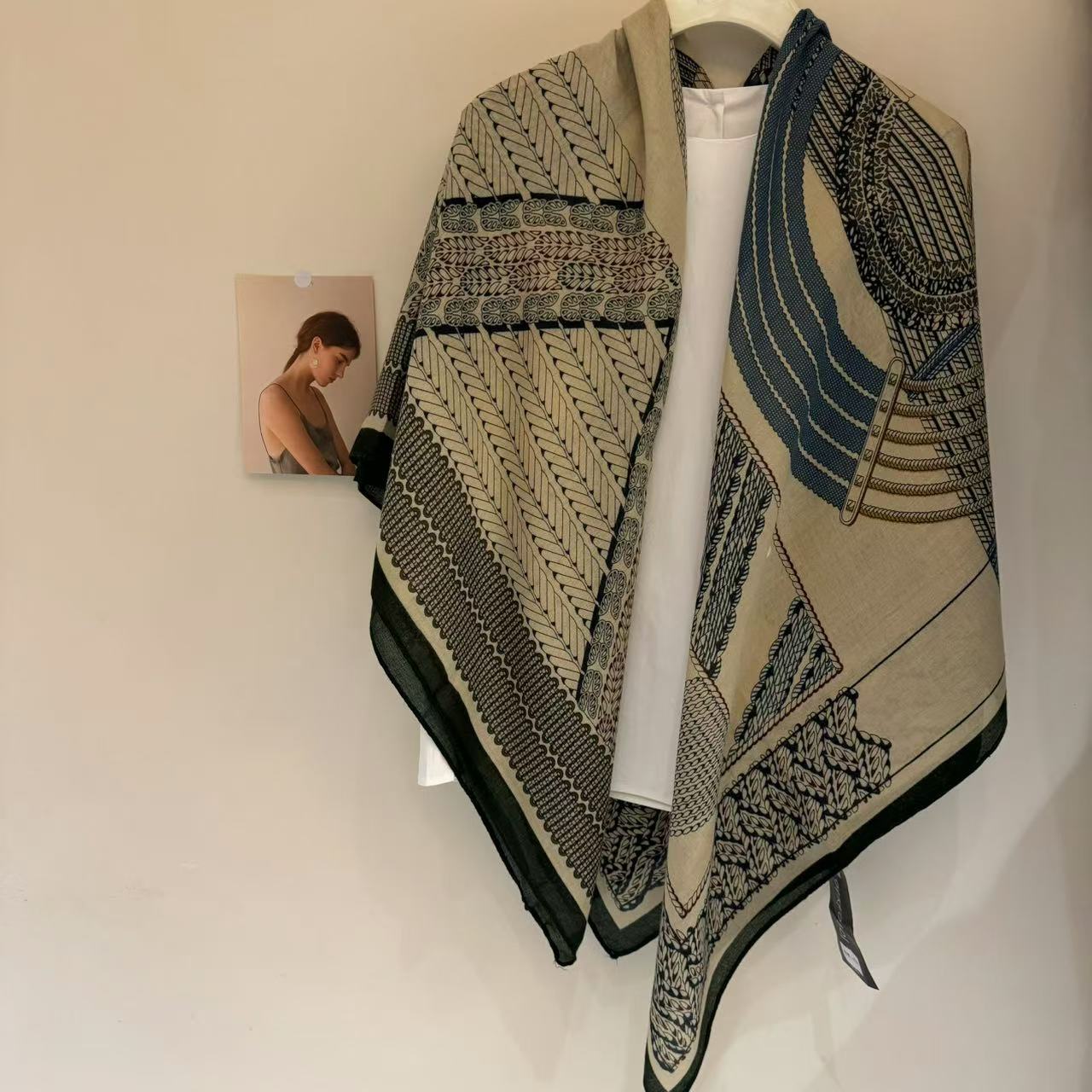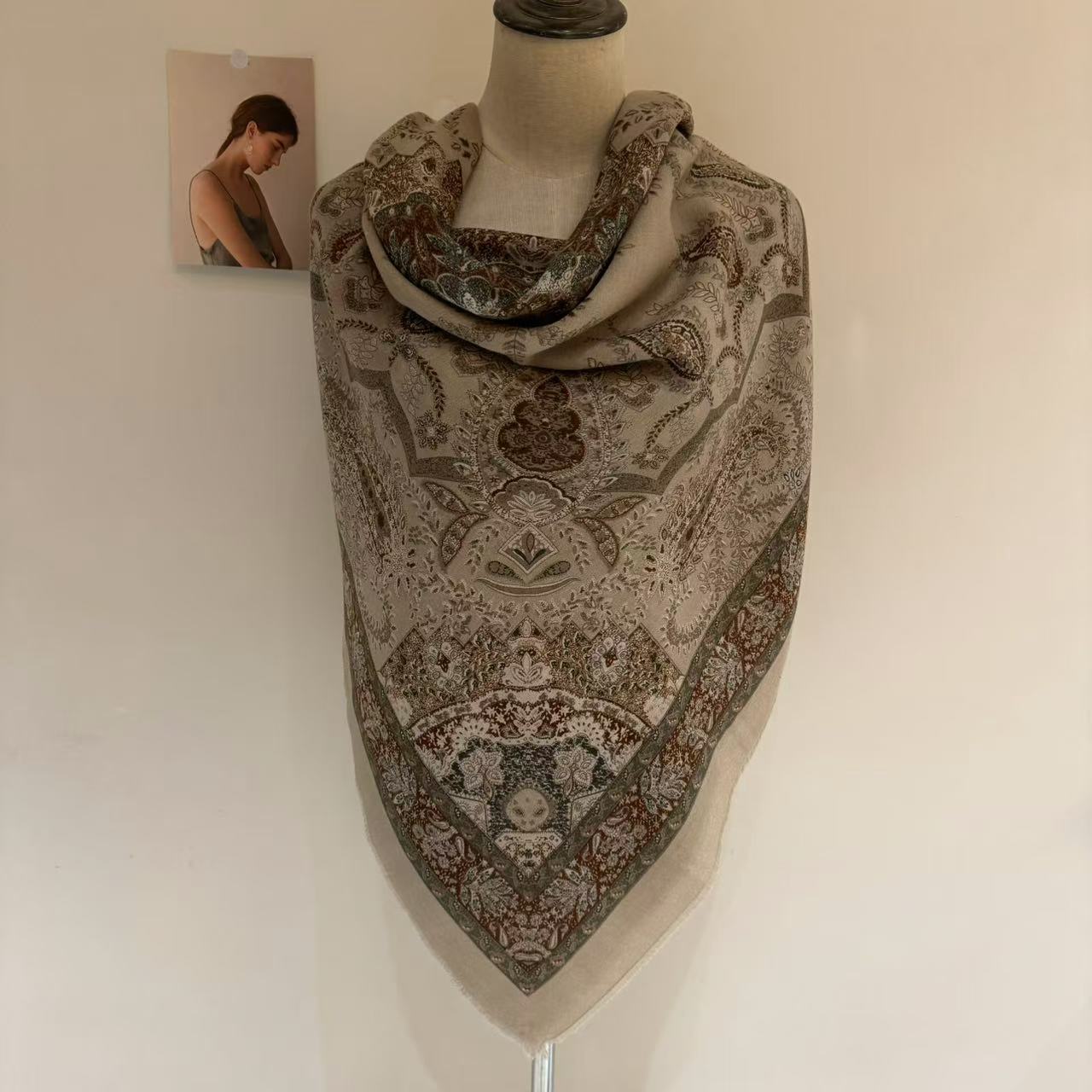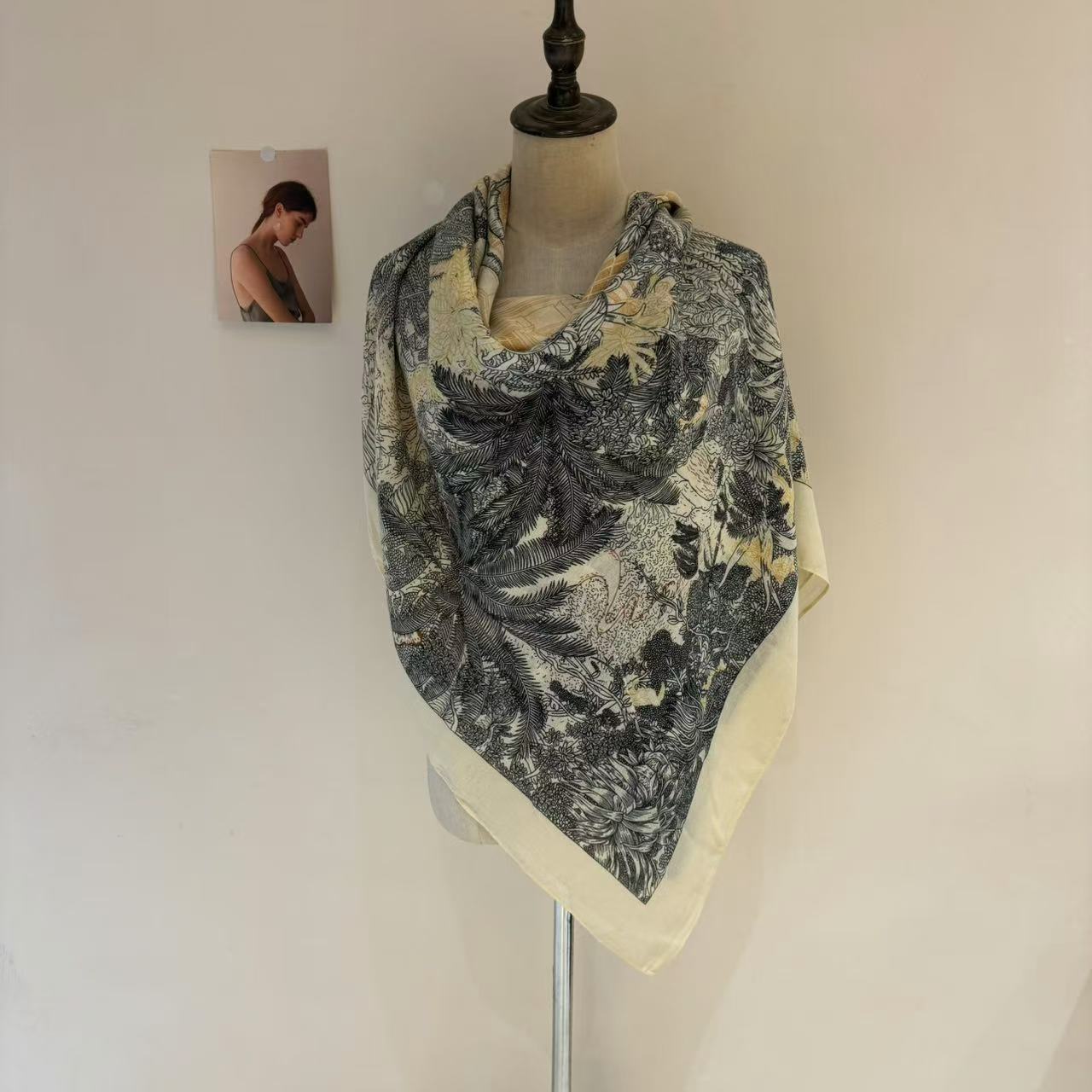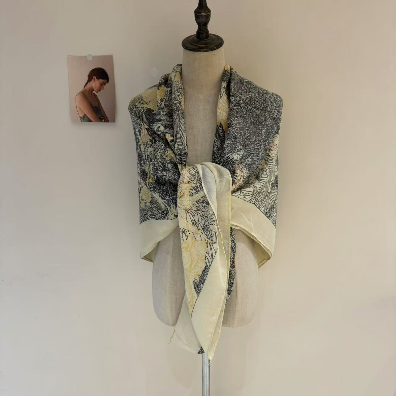 유럽 여름 130*130 대형 사각형 스카프 유화 꽃 인쇄 면화 실크 스카프 여성 가을, 겨울 한국 스타일 장식스토어 가기
