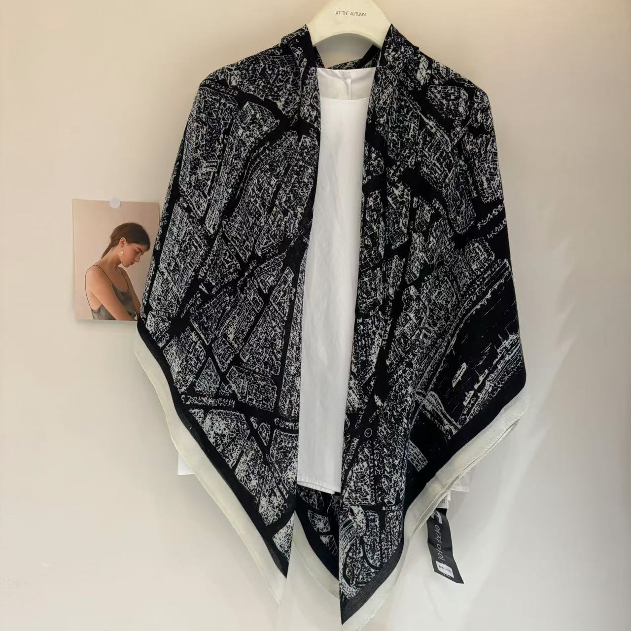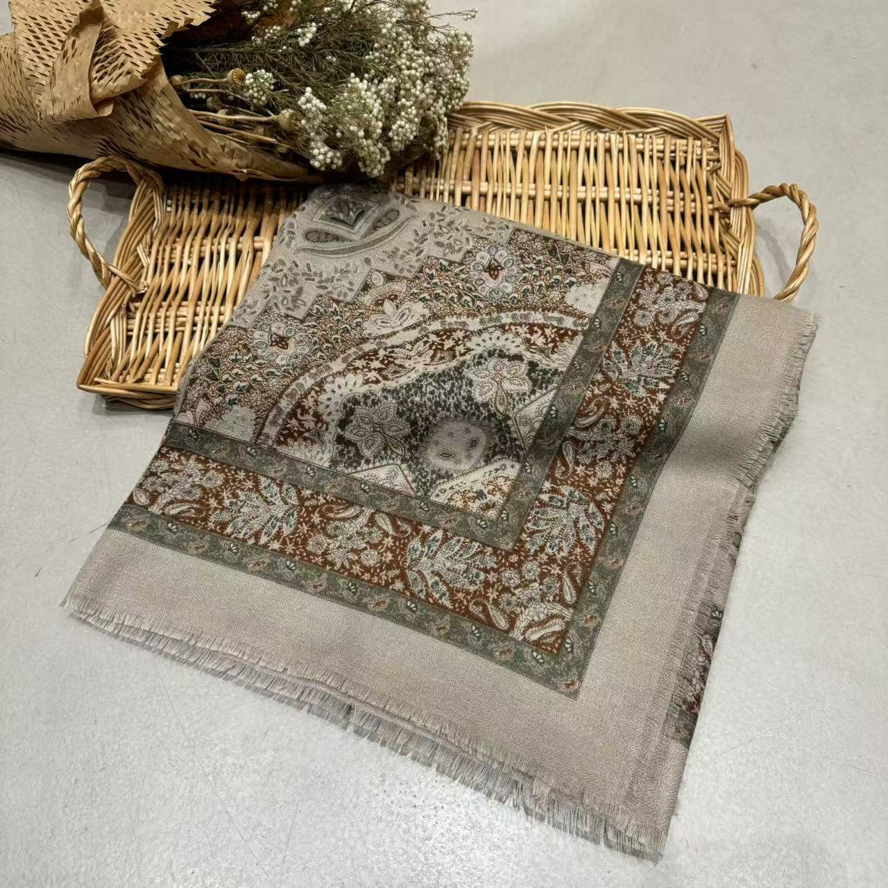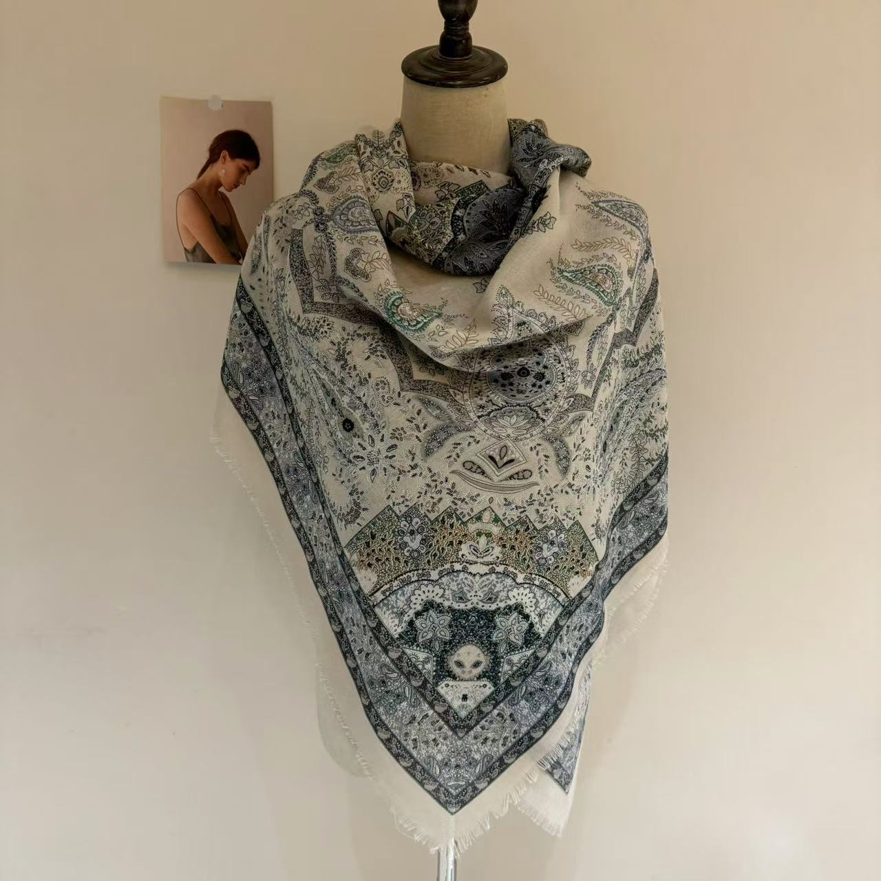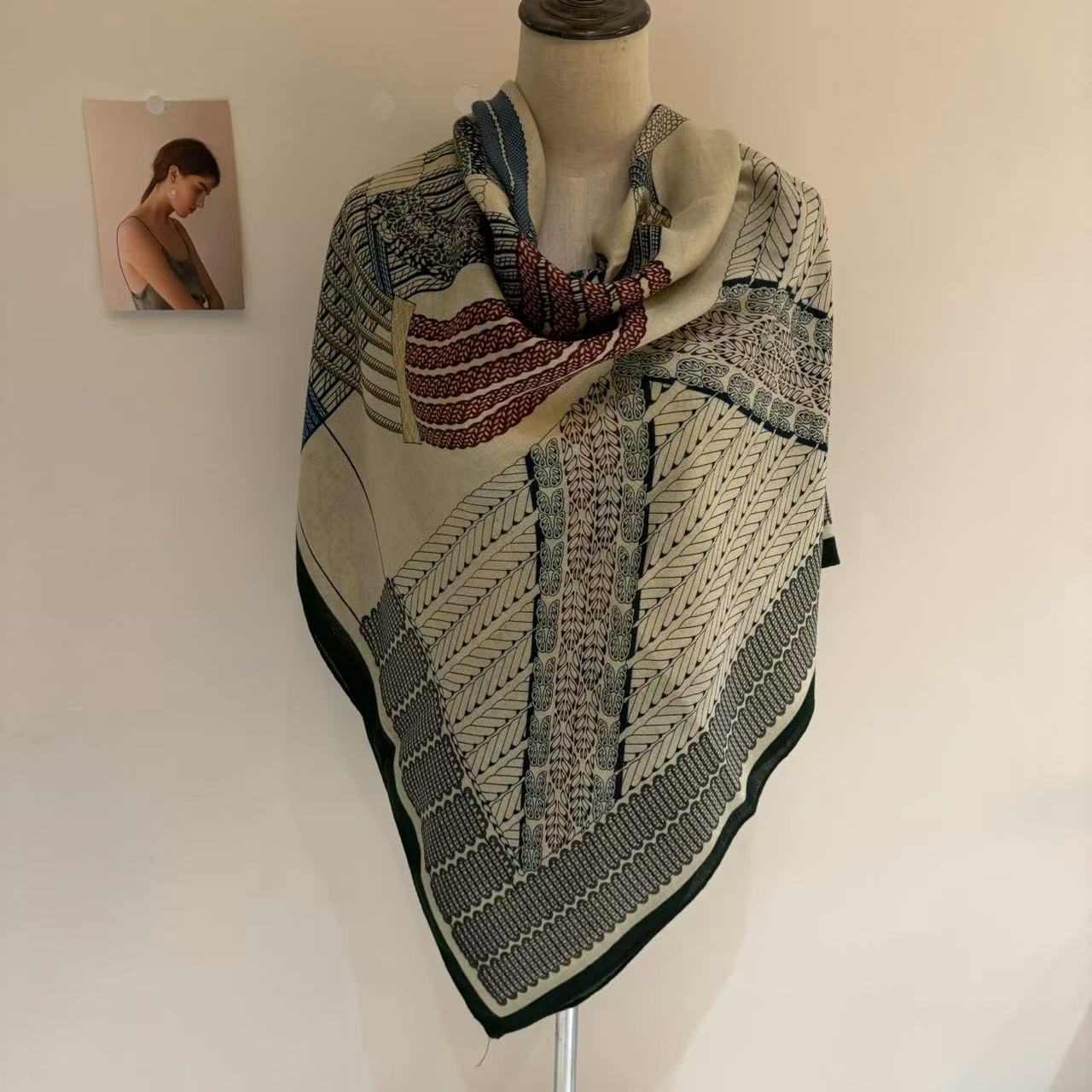 유럽 여름 130*130 대형 사각형 스카프 유화 꽃 인쇄 면화 실크 스카프 여성 가을, 겨울 한국 스타일 장식스토어 가기