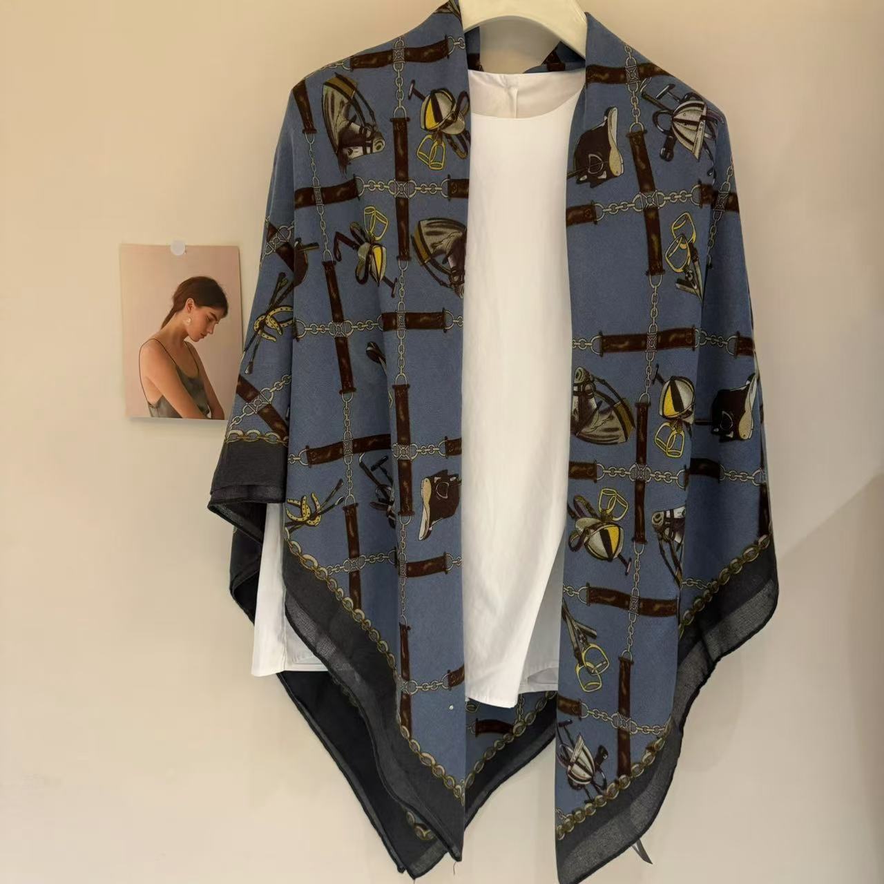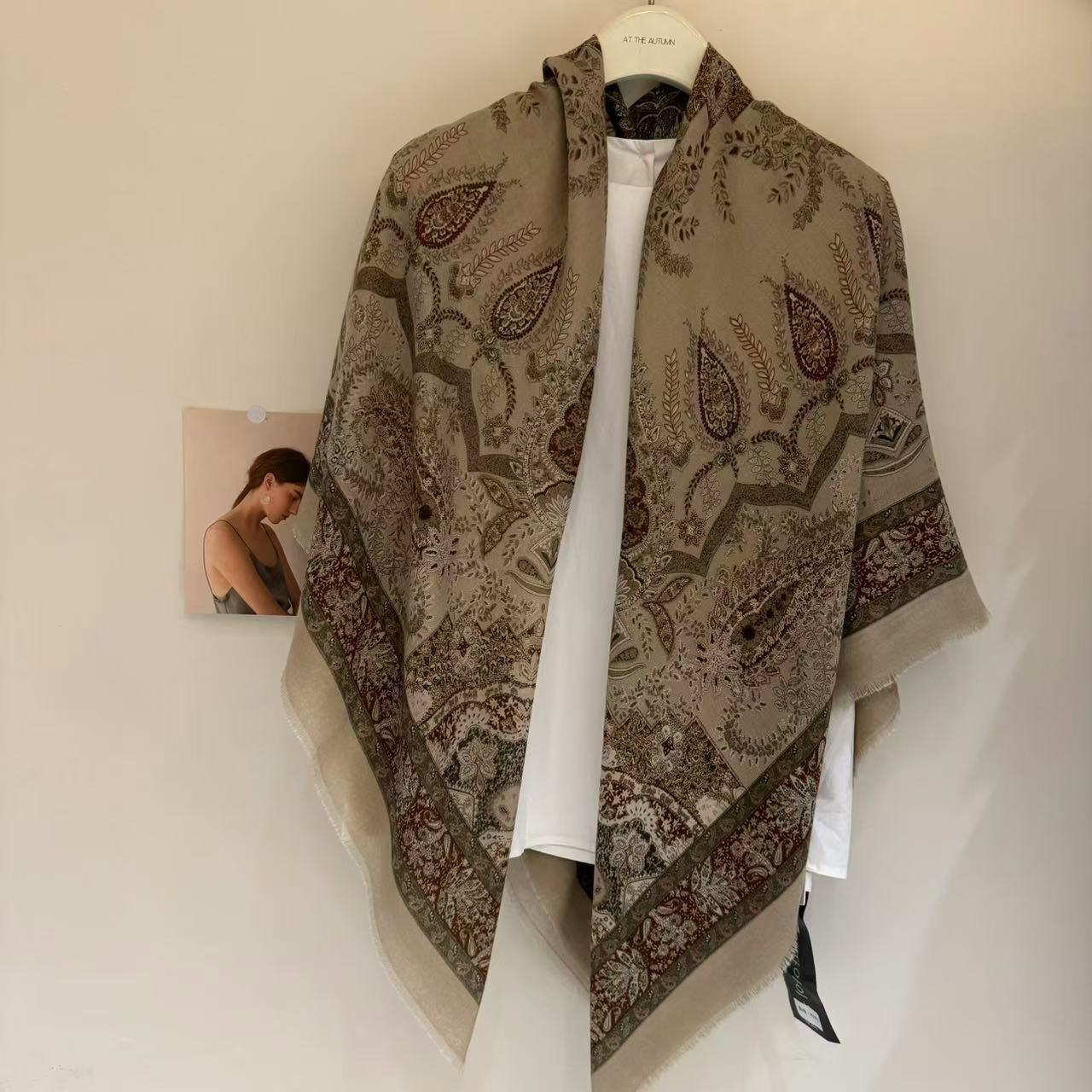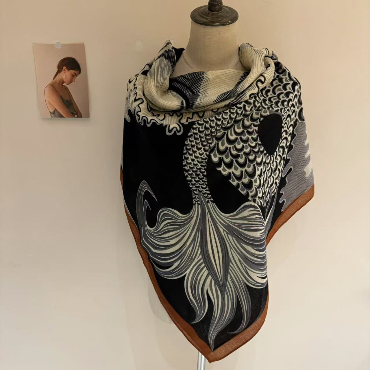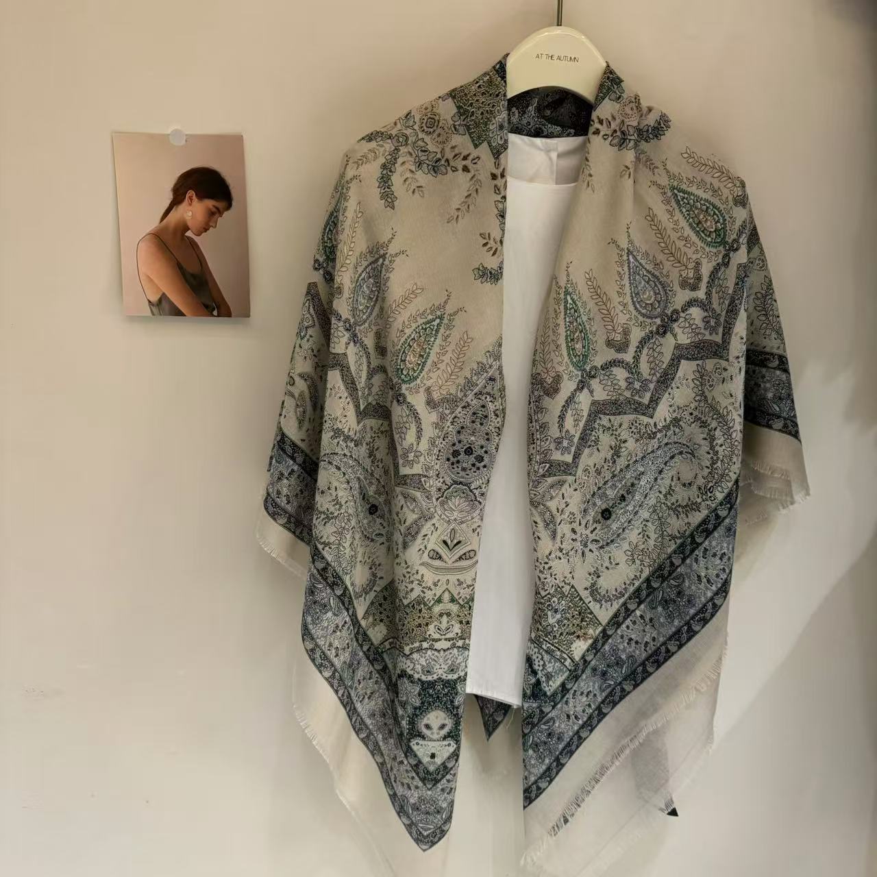 유럽 여름 130*130 대형 사각형 스카프 유화 꽃 인쇄 면화 실크 스카프 여성 가을, 겨울 한국 스타일 장식스토어 가기