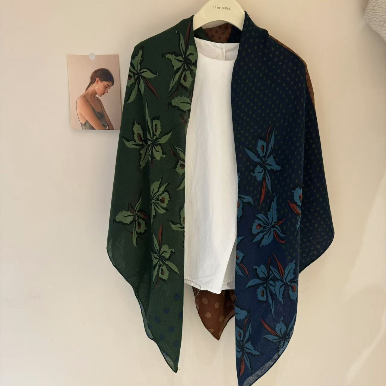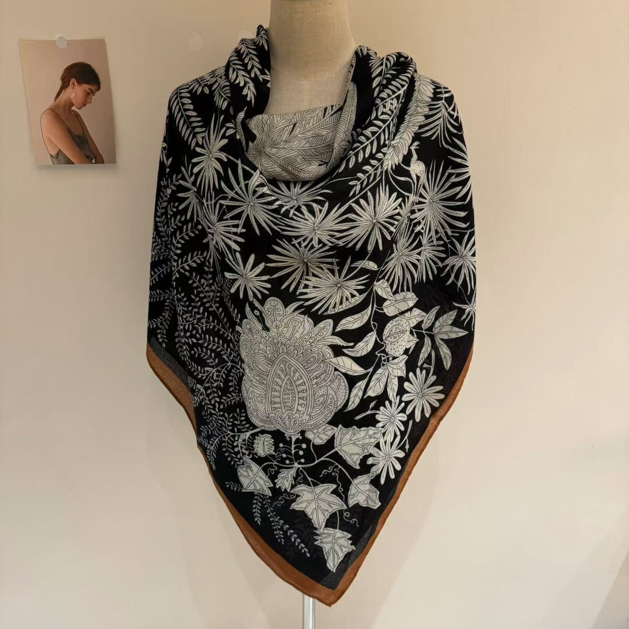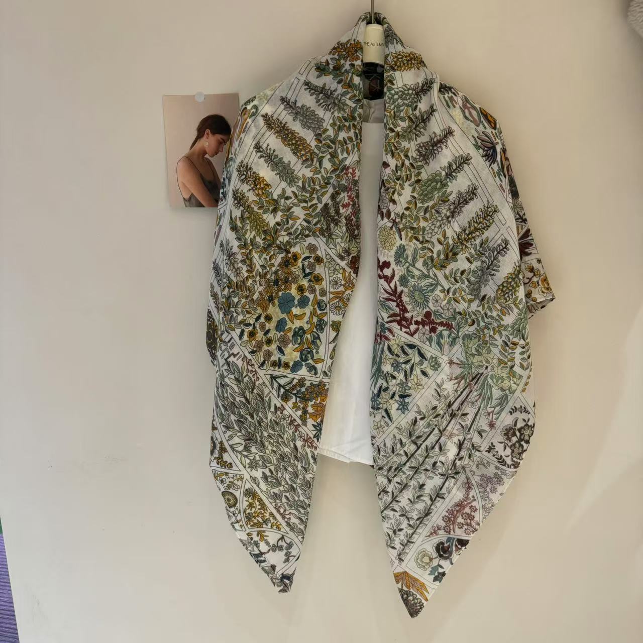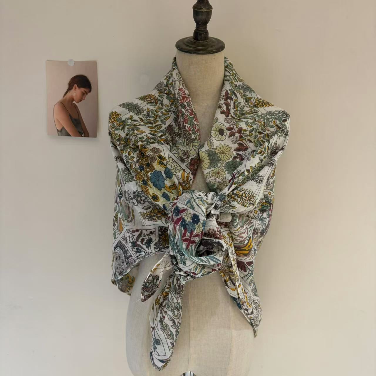 유럽 여름 130*130 대형 사각형 스카프 유화 꽃 인쇄 면화 실크 스카프 여성 가을, 겨울 한국 스타일 장식