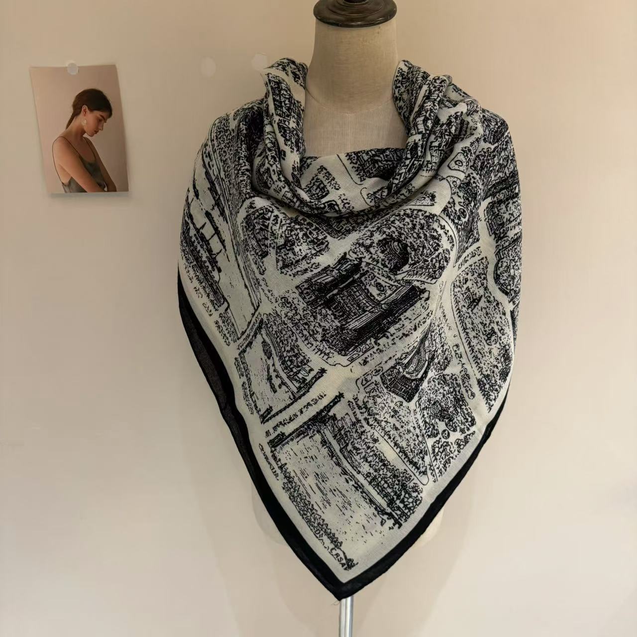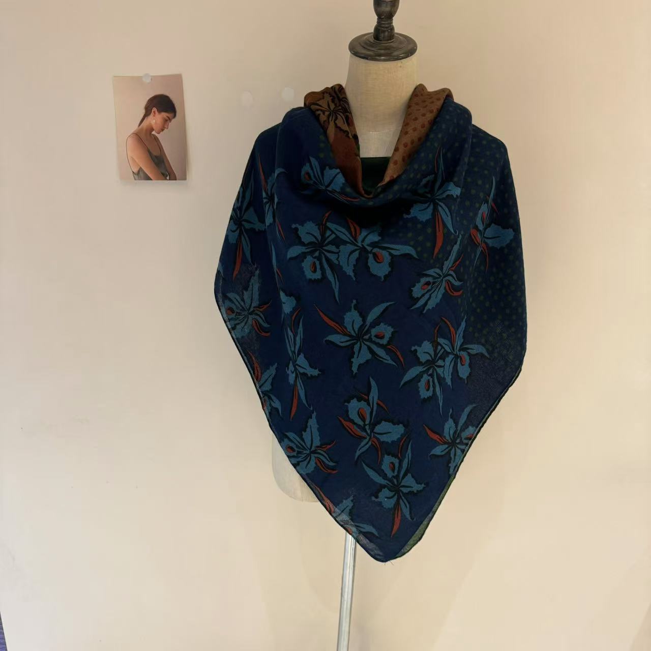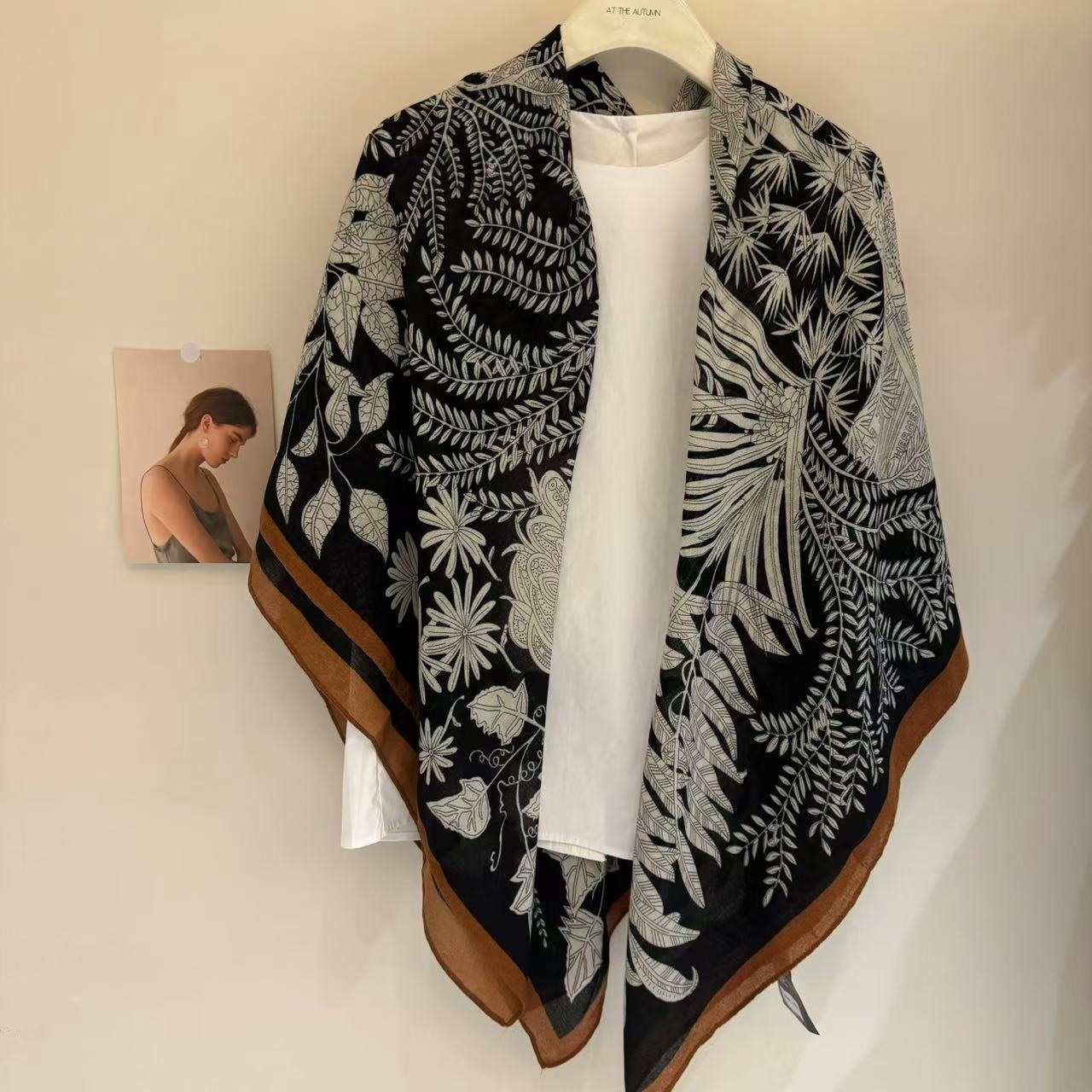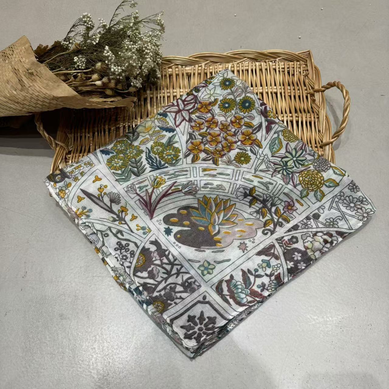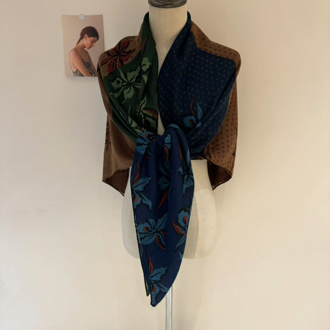 유럽 여름 130*130 대형 사각형 스카프 유화 꽃 인쇄 면화 실크 스카프 여성 가을, 겨울 한국 스타일 장식