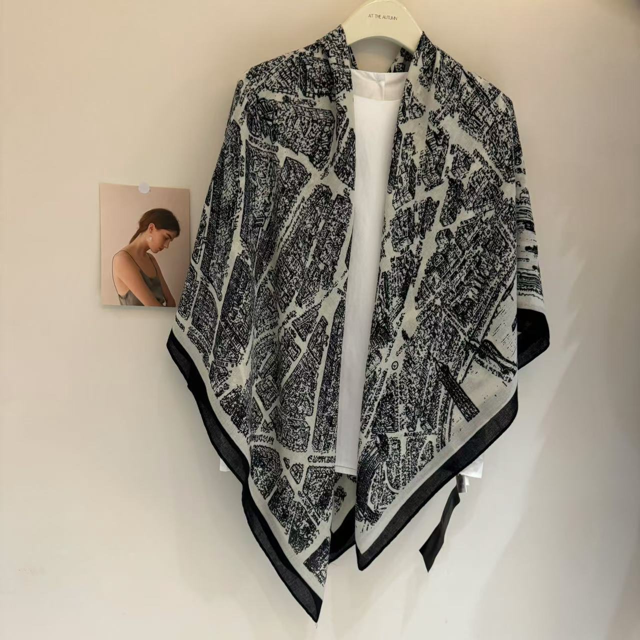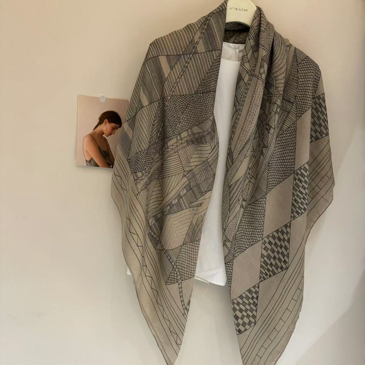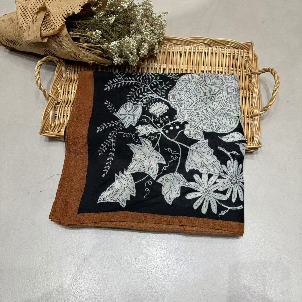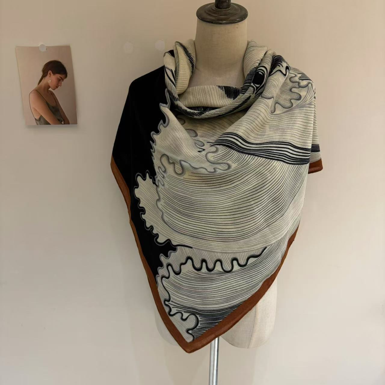 유럽 여름 130*130 대형 사각형 스카프 유화 꽃 인쇄 면화 실크 스카프 여성 가을, 겨울 한국 스타일 장식