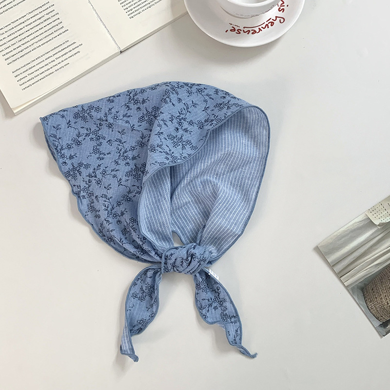 터번 여름 여성의 목회 새로운 작은 꽃 양면 삼각형 스카프 여성의 봄과 여름 얇은 격자 무늬 실크 스카프 헤어 벨트