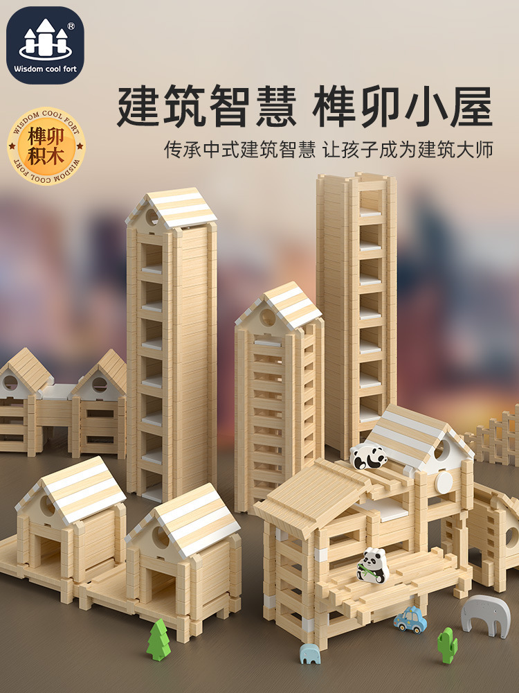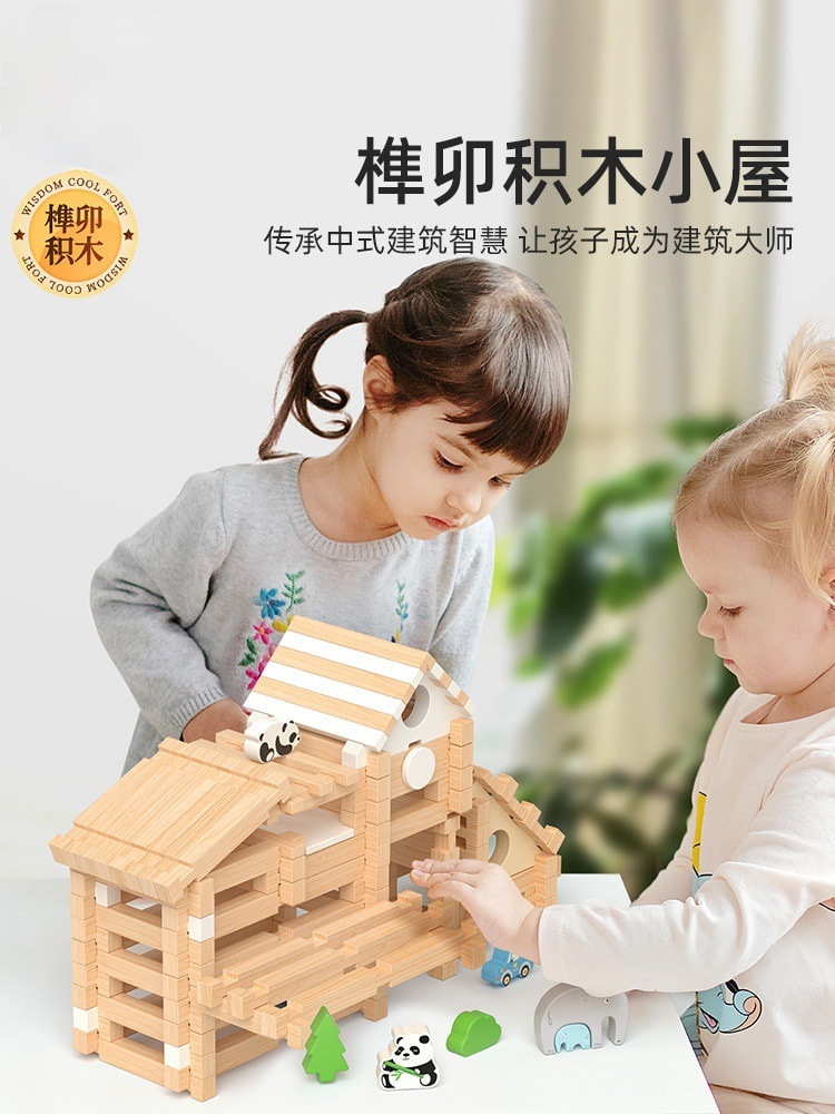 Luban Mortise 및 Tenon 빌딩 블록 조립 작은 건축가 집 오두막 어린이 지적 선물 부모-자녀 조기 교육 장난감스토어 가기