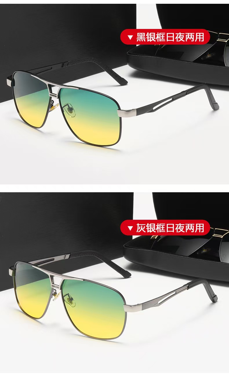 주간 및 야간 이중 사용 색상 변경 편광 선글라스 남성용 선글라스 유행 낚시 시계 드리프트 HD 드라이버 운전 안경