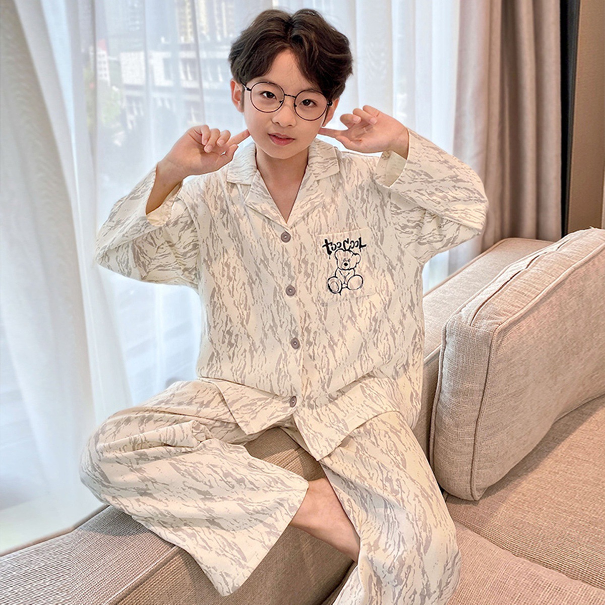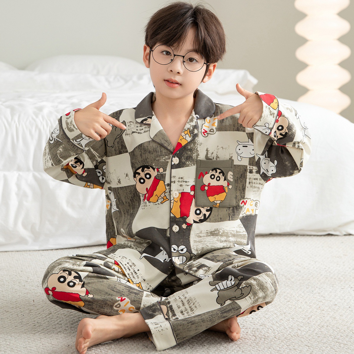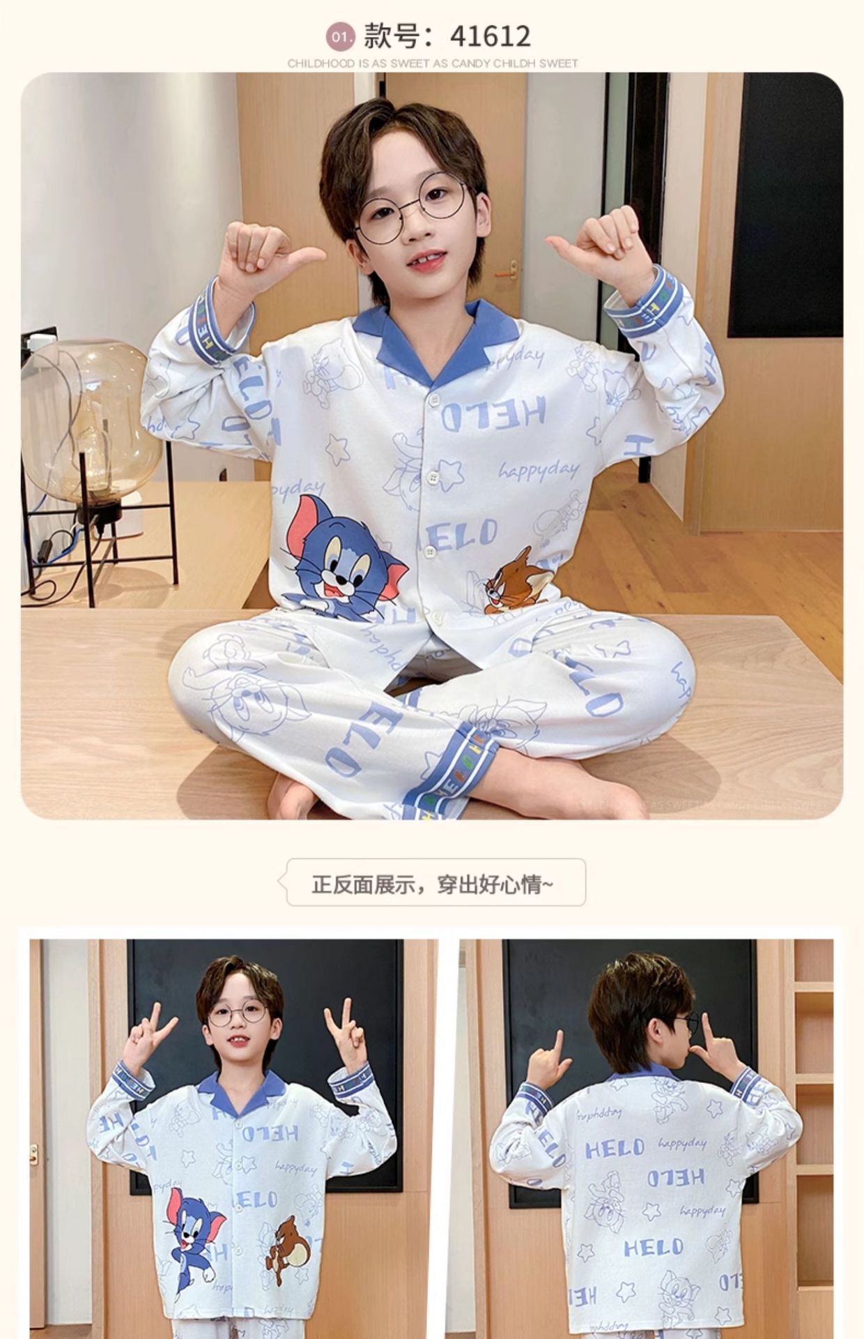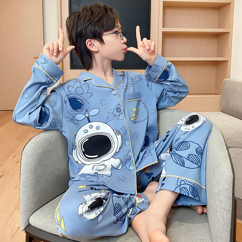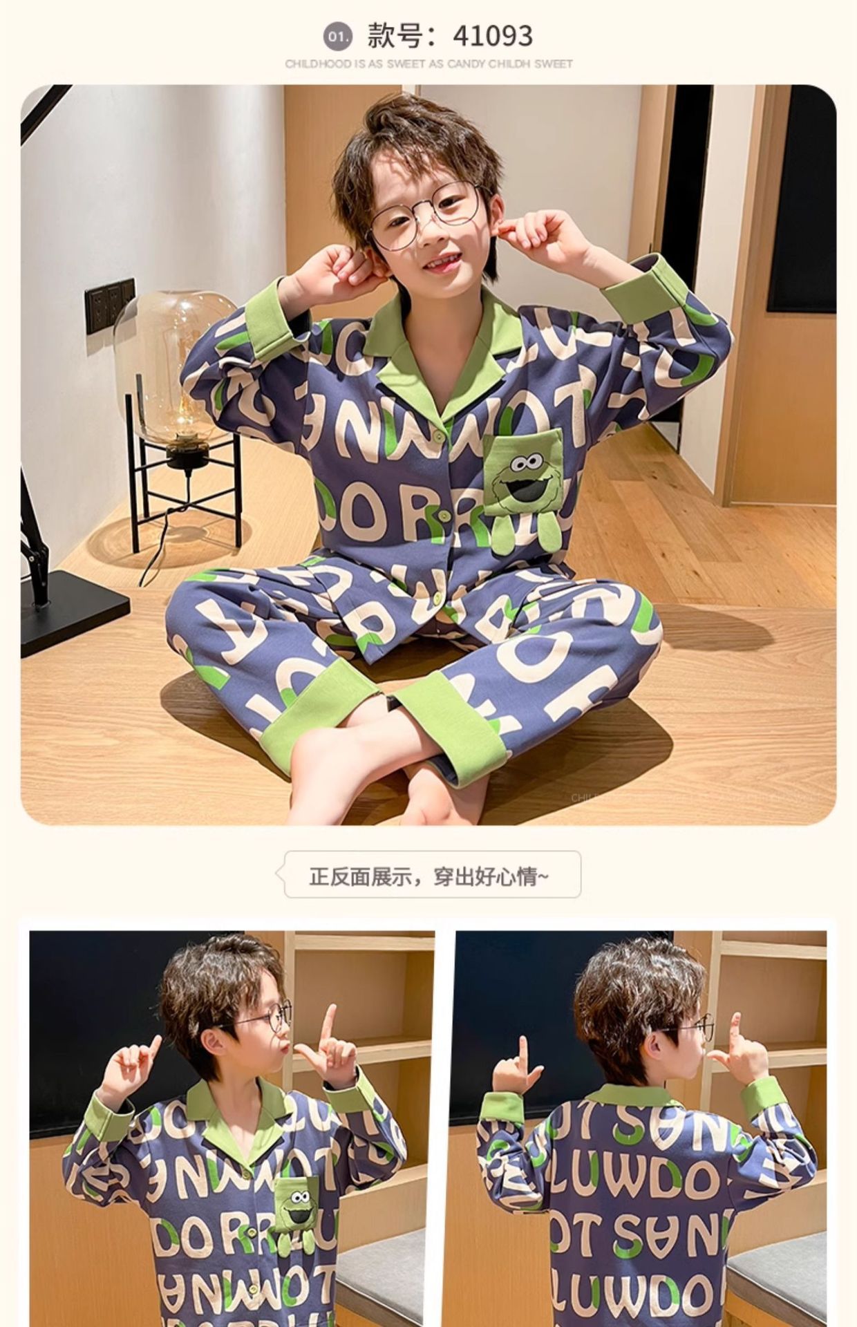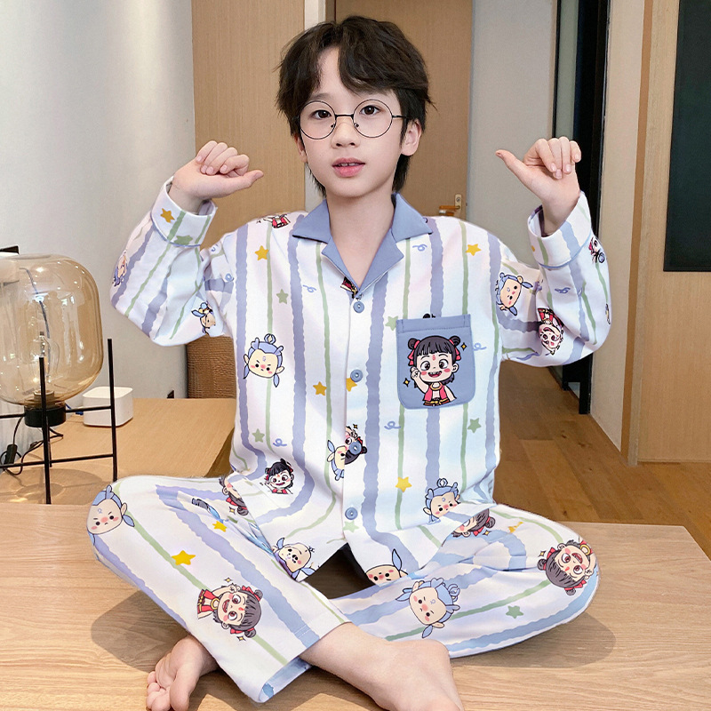 2025년 신상 순면 남아 잠옷 봄 가을 긴팔 얇은 아동 남아 청소년 여름 홈웨어
