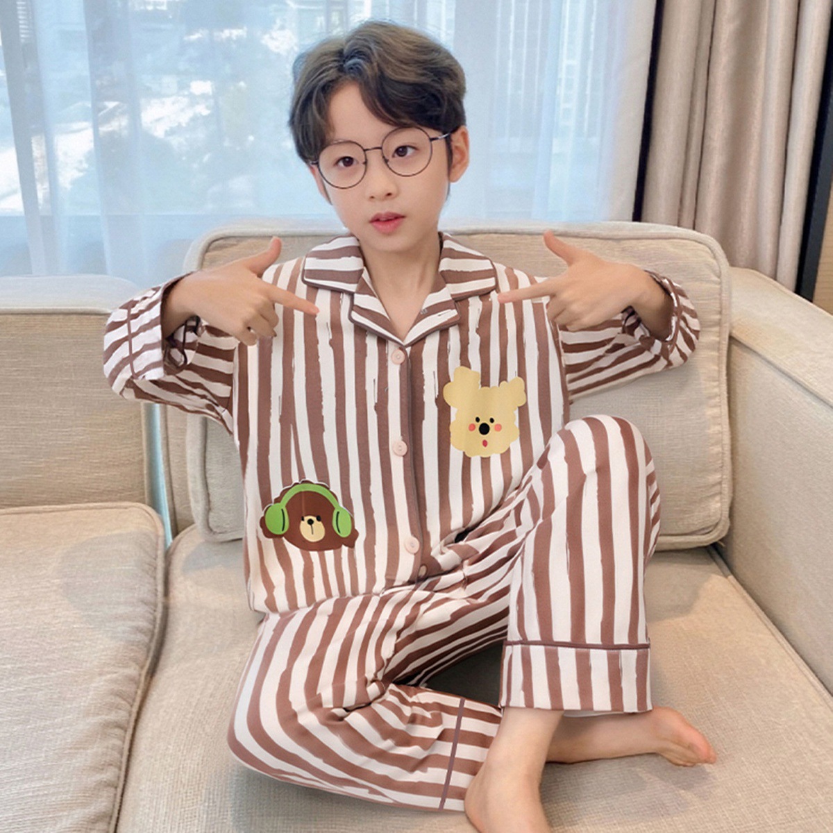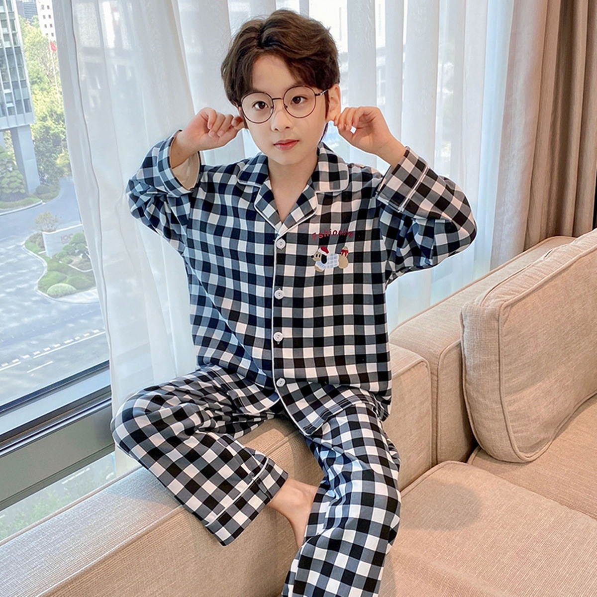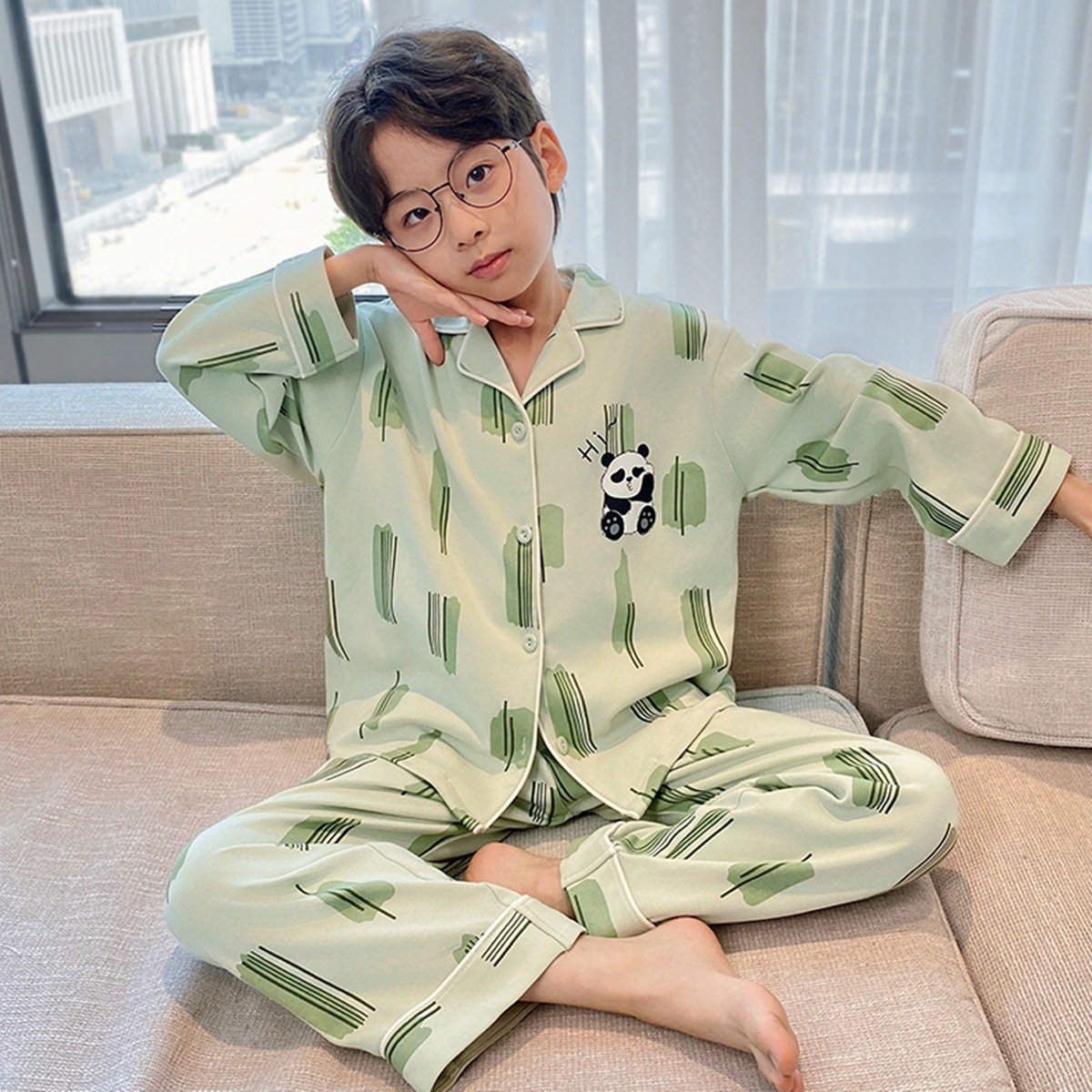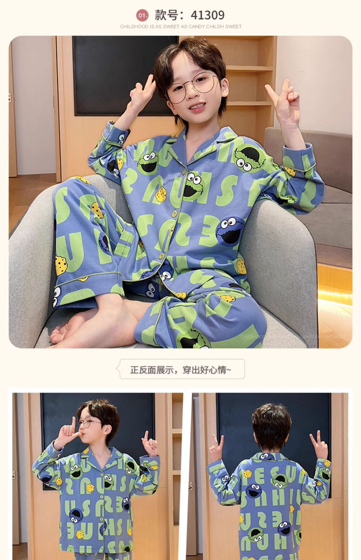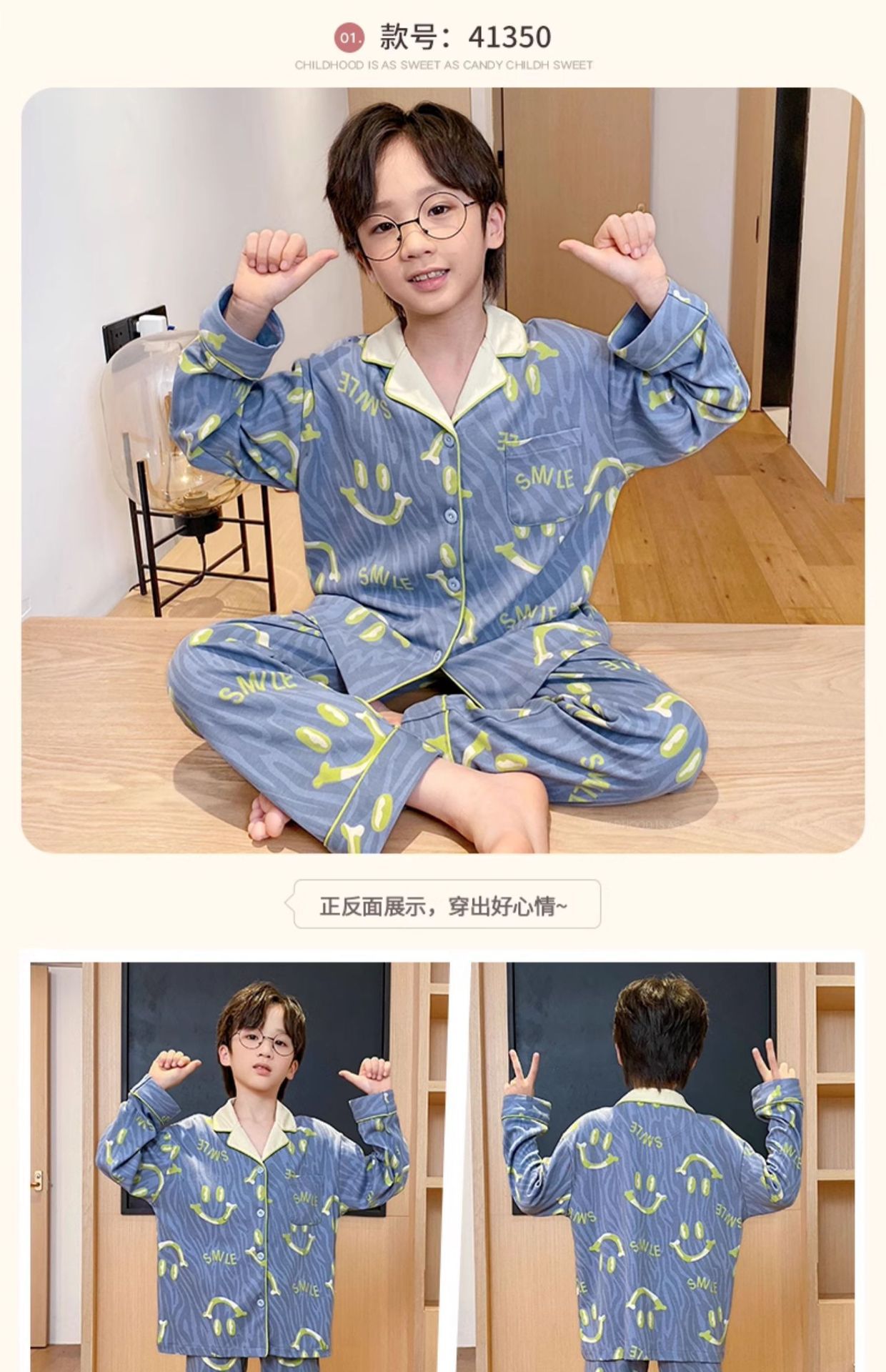 2025년 신상 순면 남아 잠옷 봄 가을 긴팔 얇은 아동 남아 청소년 여름 홈웨어