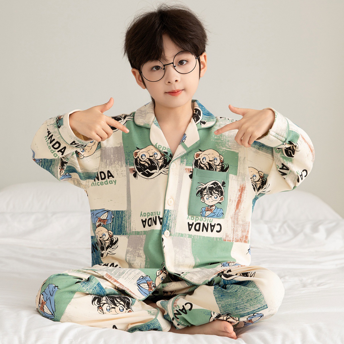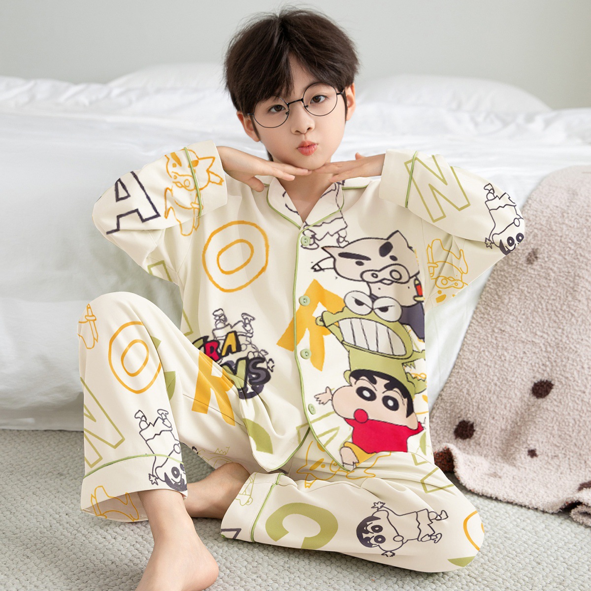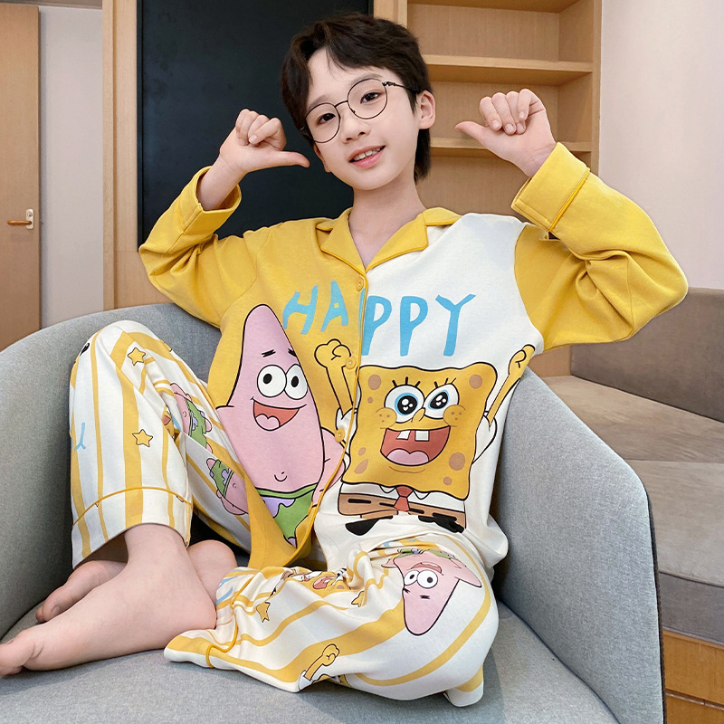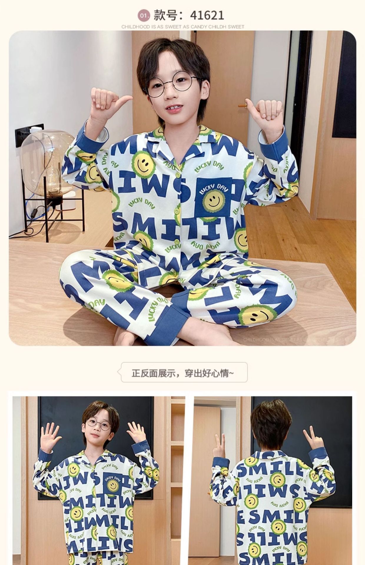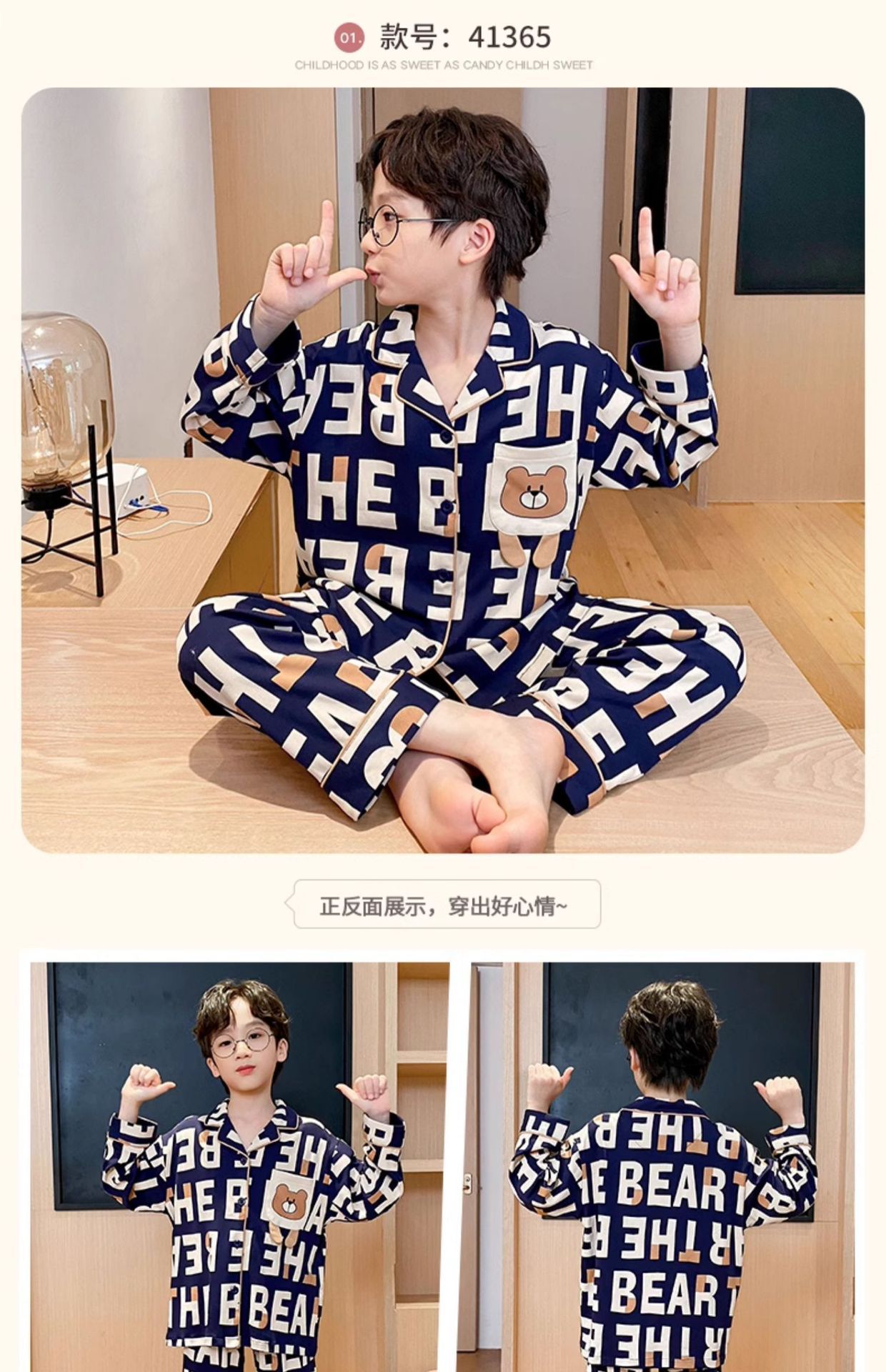2025년 신상 순면 남아 잠옷 봄 가을 긴팔 얇은 아동 남아 청소년 여름 홈웨어