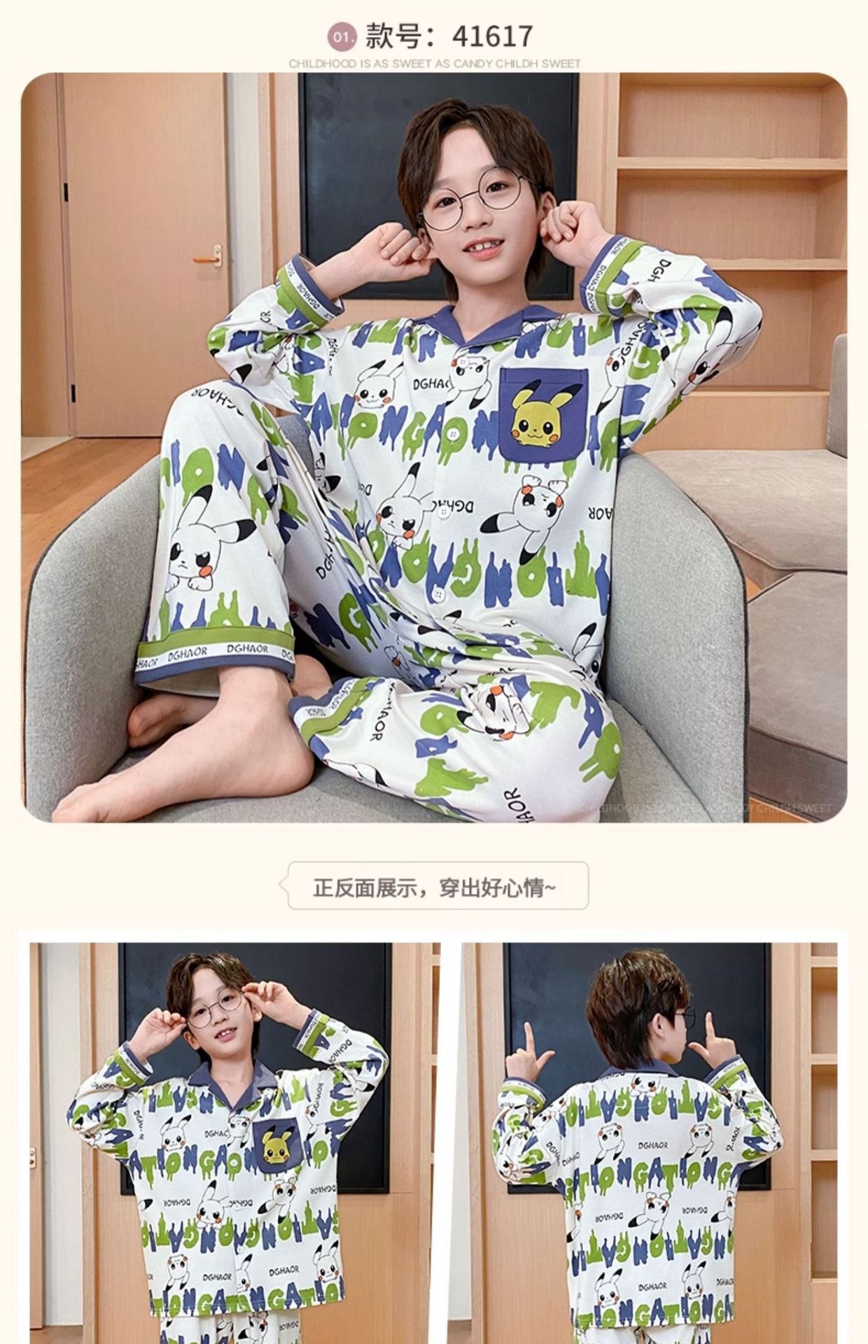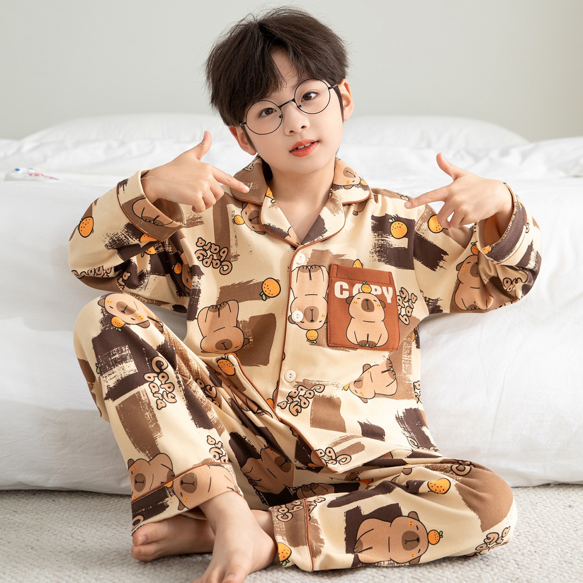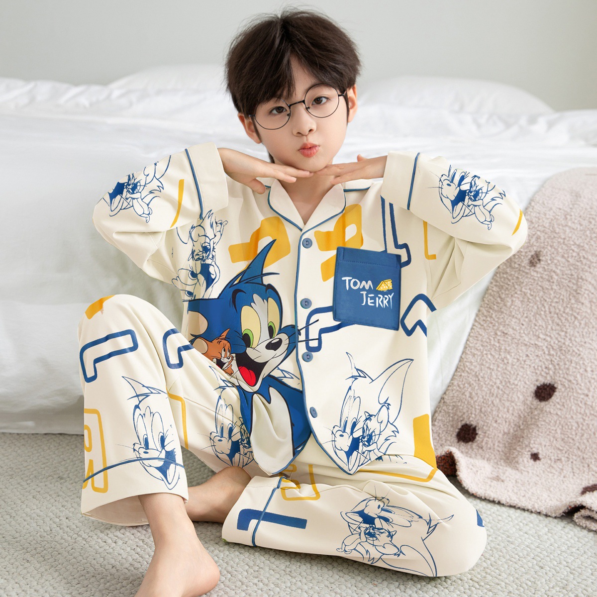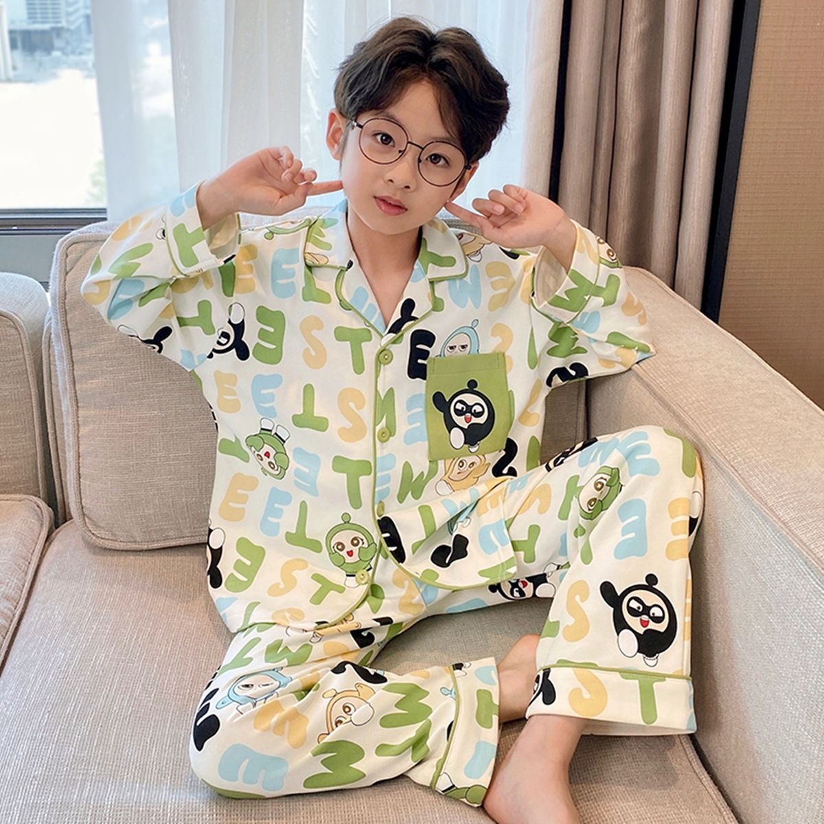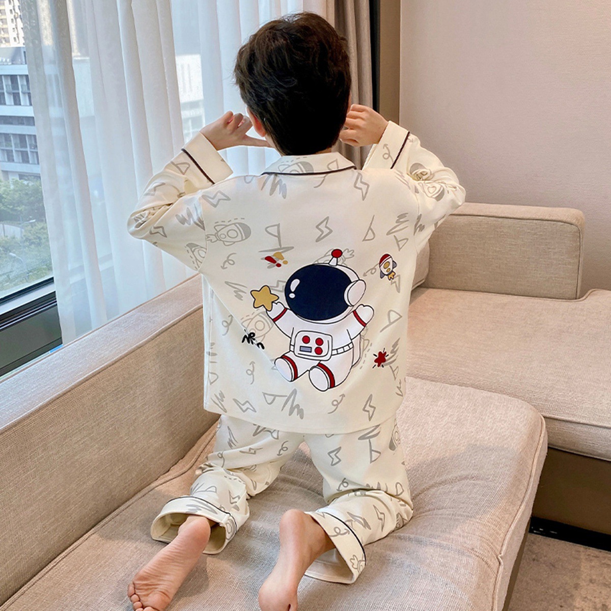 2025년 신상 순면 남아 잠옷 봄 가을 긴팔 얇은 아동 남아 청소년 여름 홈웨어