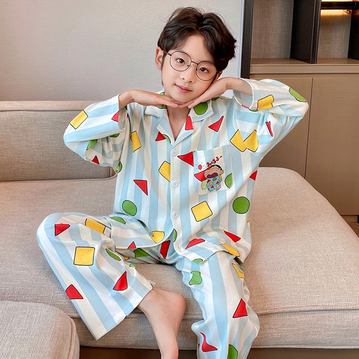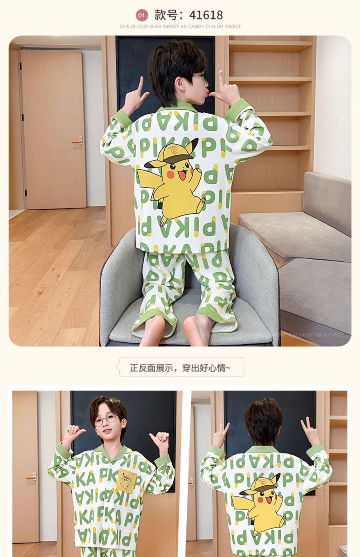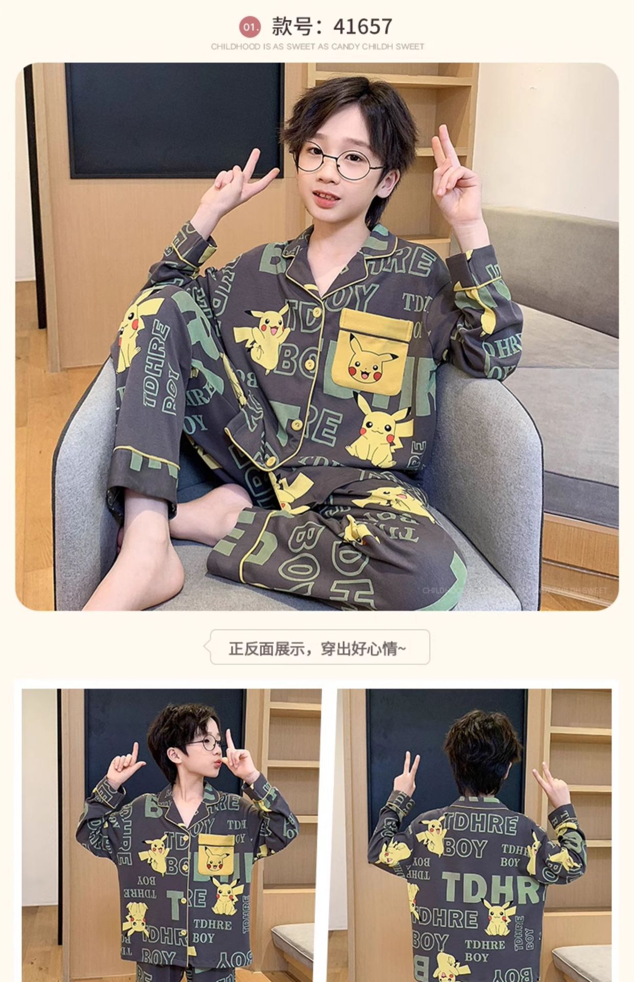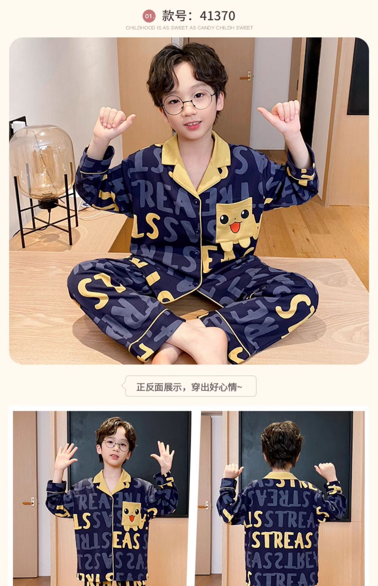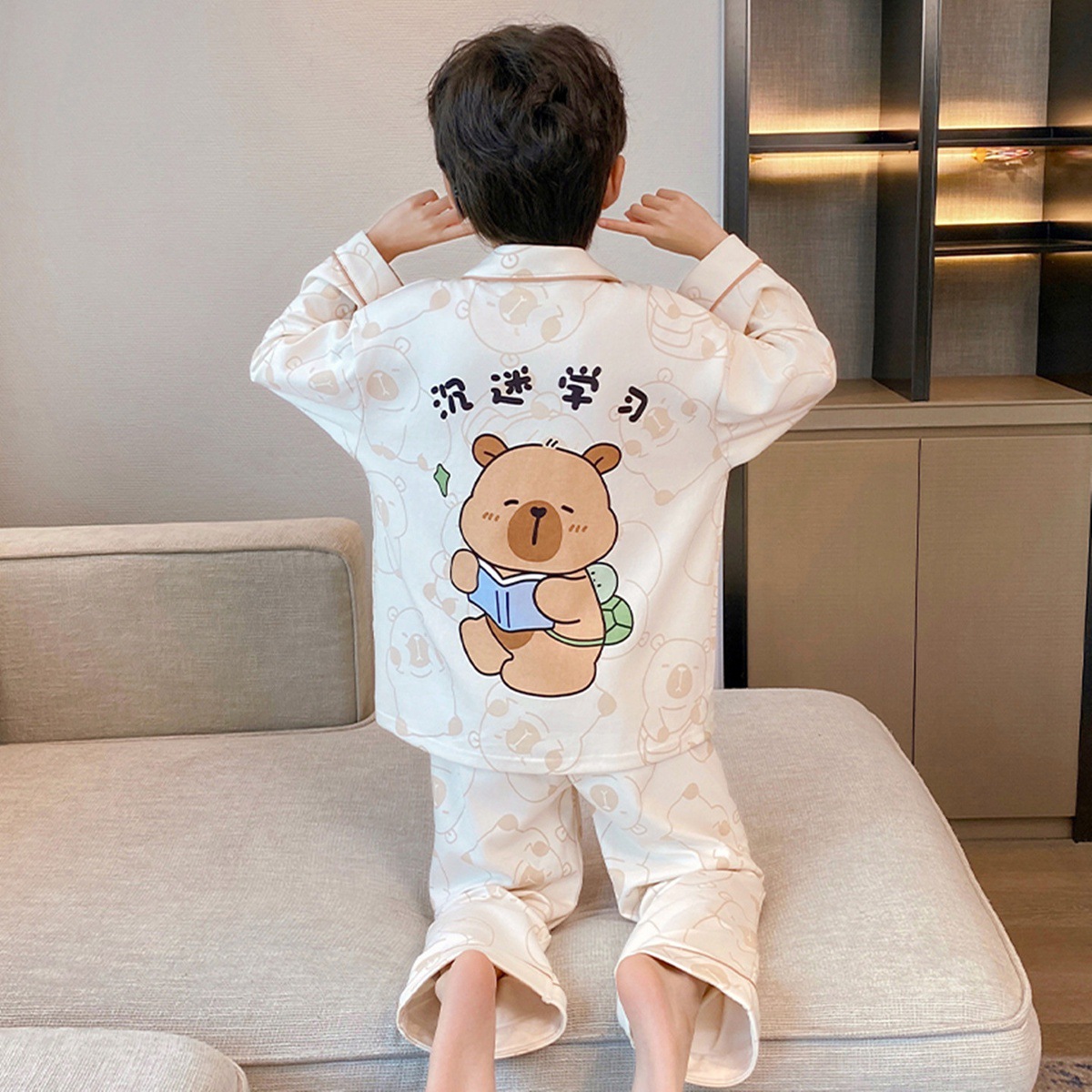 2025년 신상 순면 남아 잠옷 봄 가을 긴팔 얇은 아동 남아 청소년 여름 홈웨어