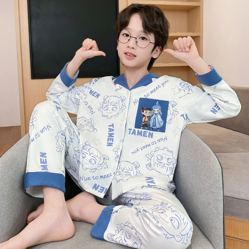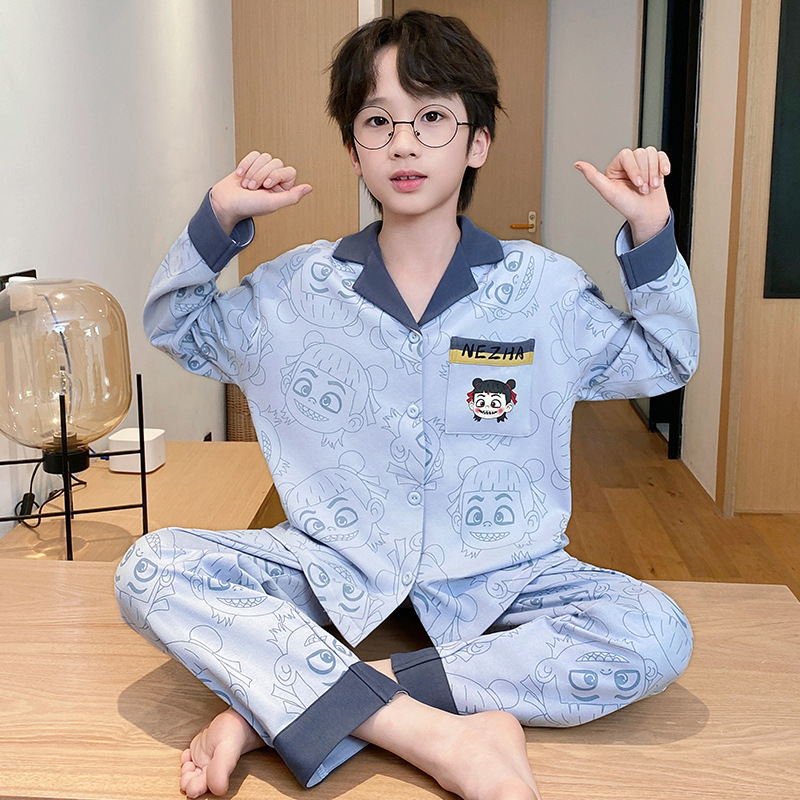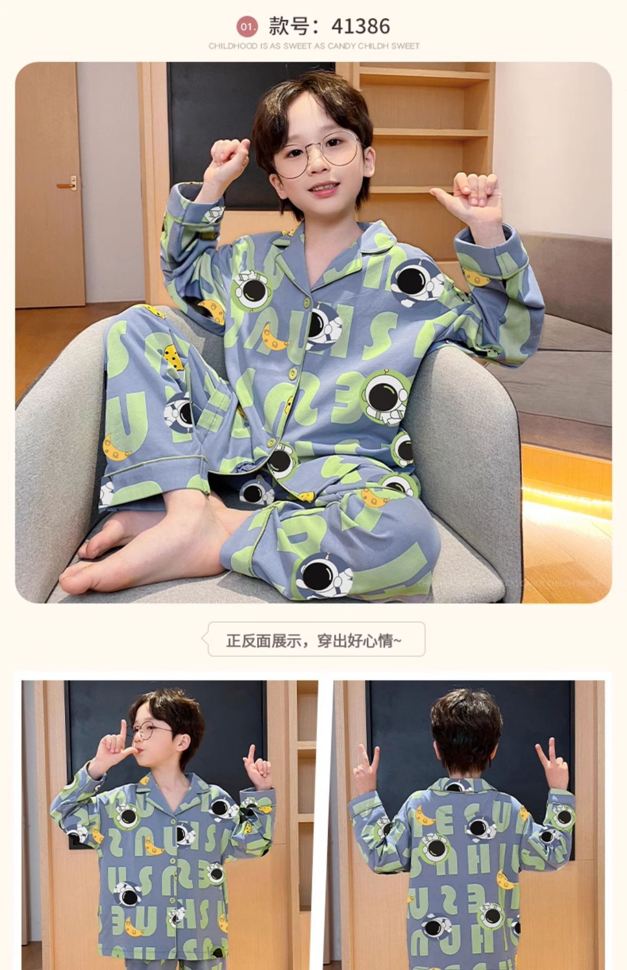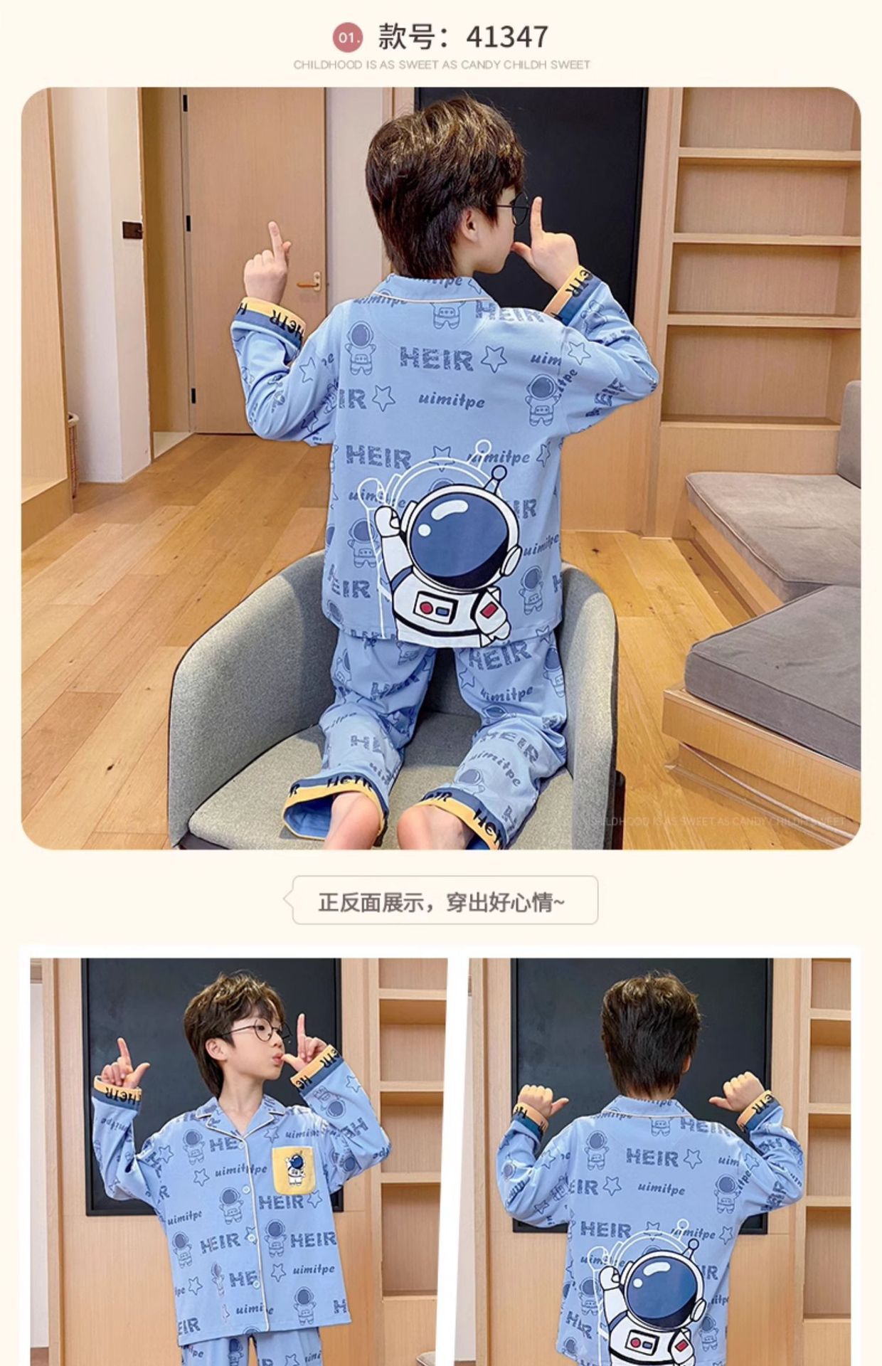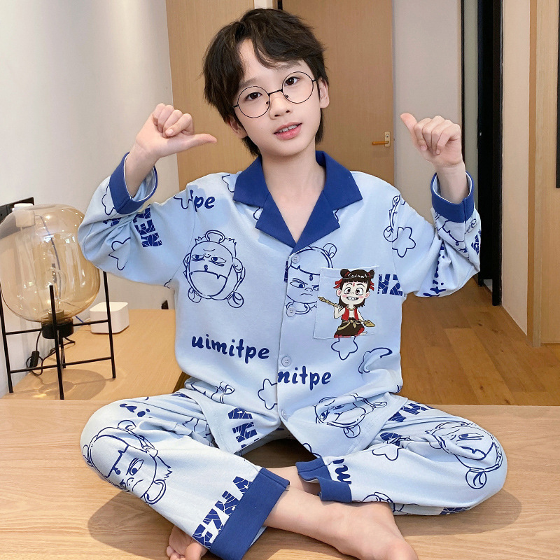 2025년 신상 순면 남아 잠옷 봄 가을 긴팔 얇은 아동 남아 청소년 여름 홈웨어스토어 가기