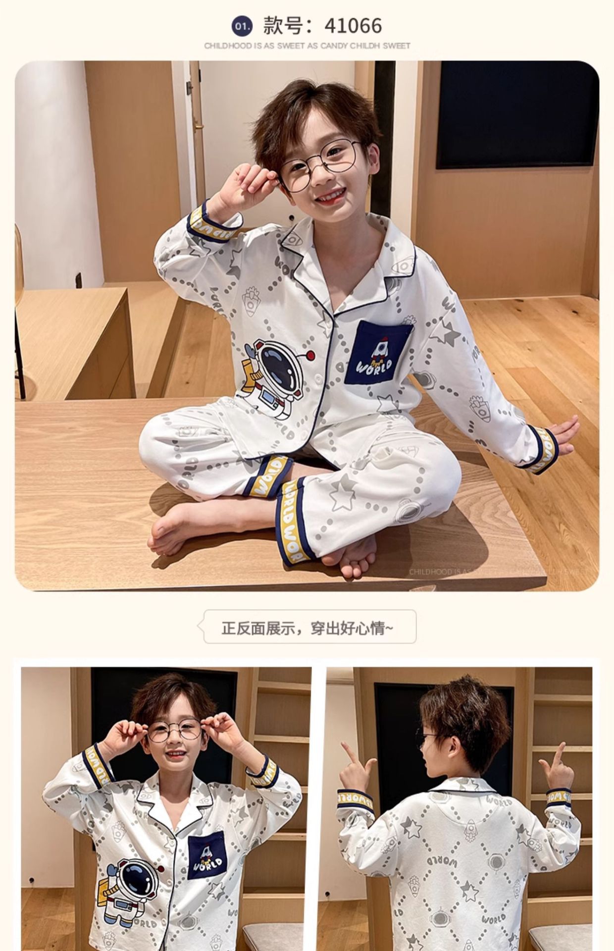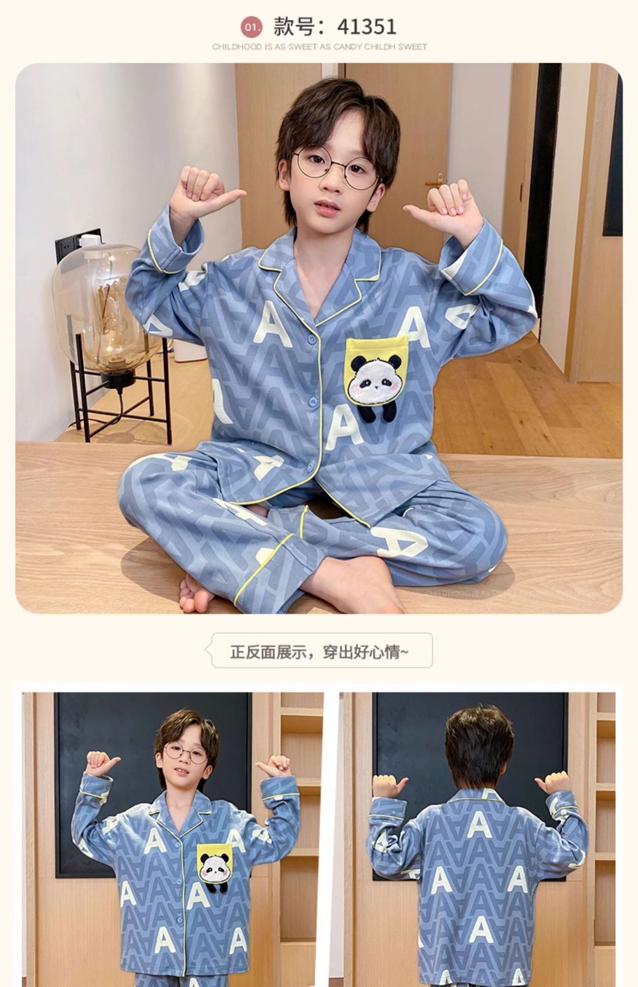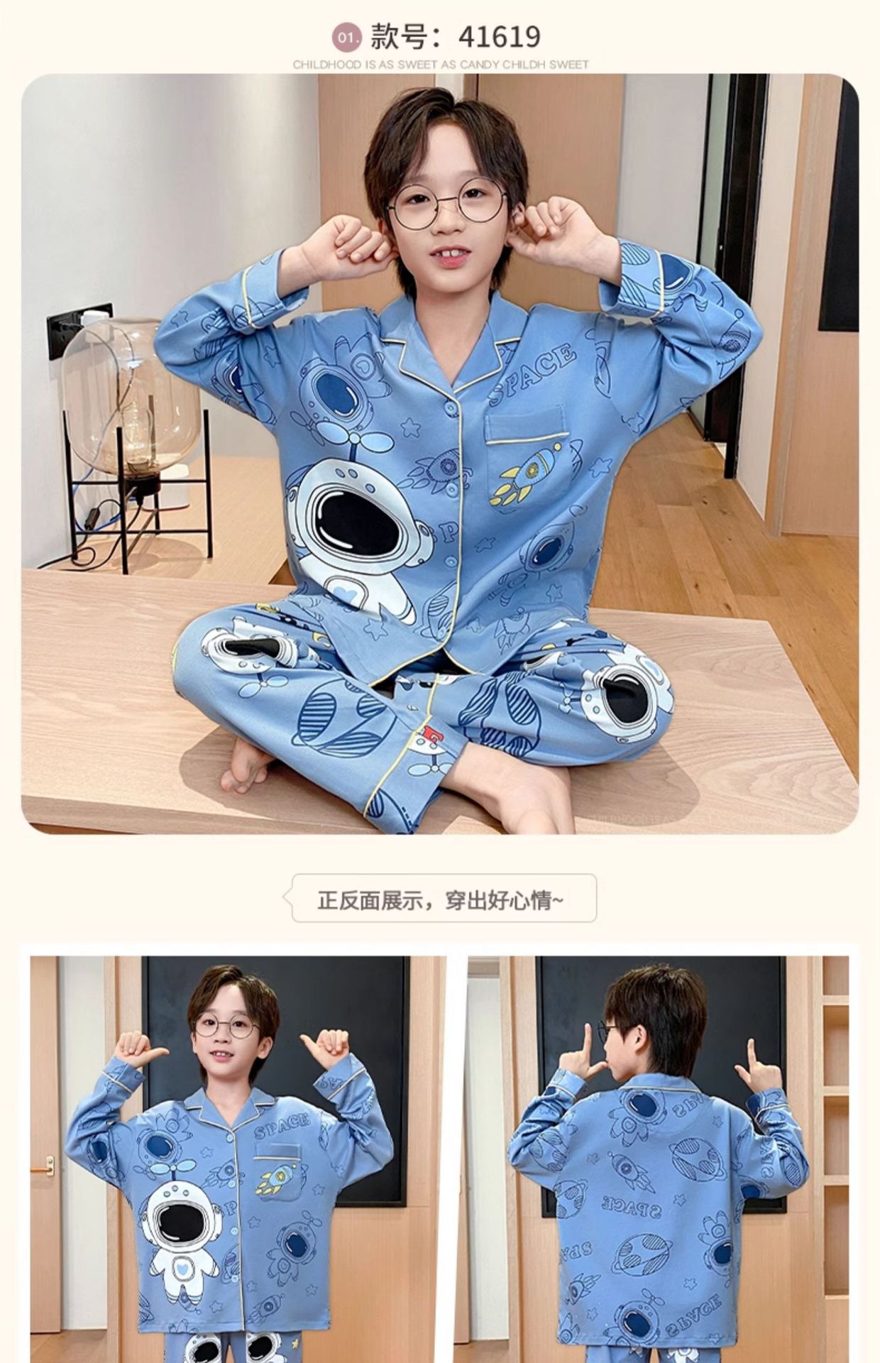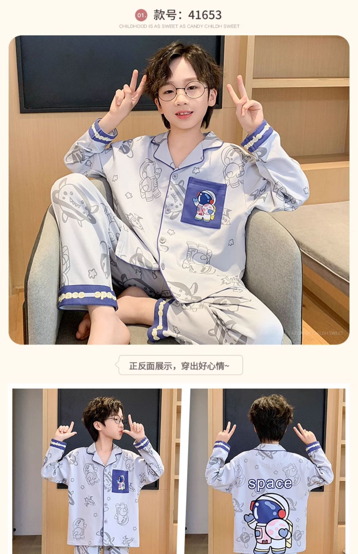2025년 신상 순면 남아 잠옷 봄 가을 긴팔 얇은 아동 남아 청소년 여름 홈웨어스토어 가기