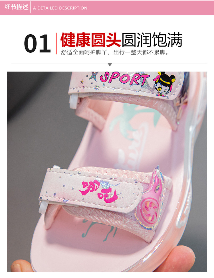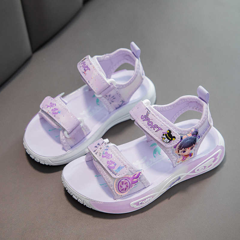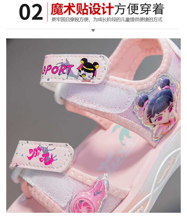 Nezha 소녀 샌들 2025 여름 새로운 어린이 공주 신발 소녀 여성의 보물 큰 어린이 비치 신발 6-12 세