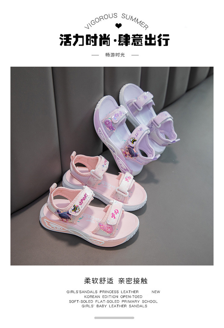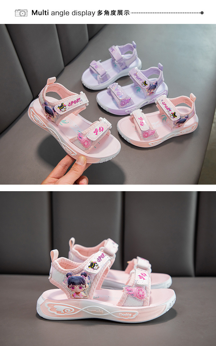 Nezha 소녀 샌들 2025 여름 새로운 어린이 공주 신발 소녀 여성의 보물 큰 어린이 비치 신발 6-12 세스토어 가기