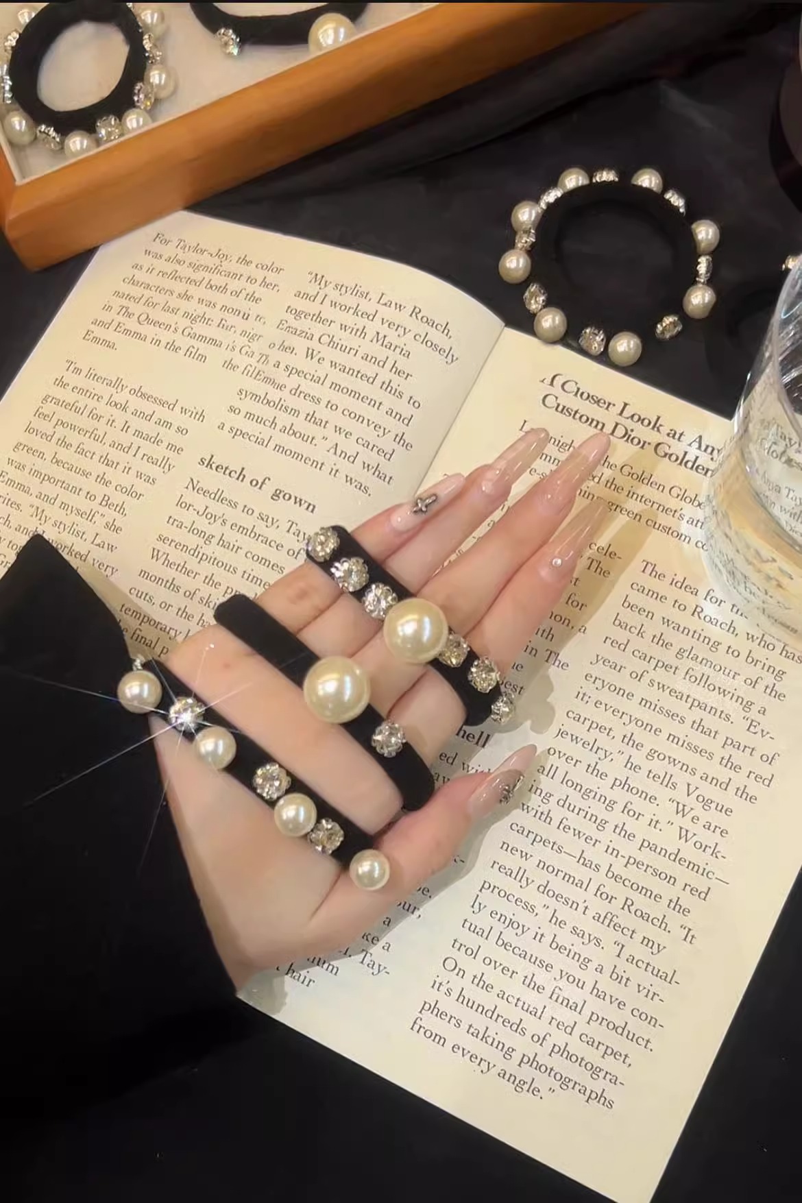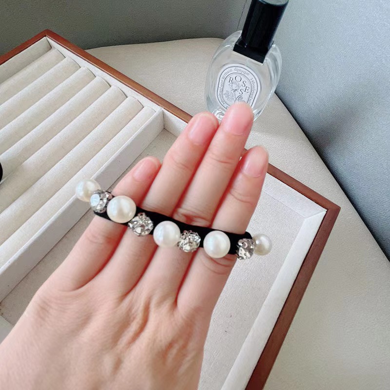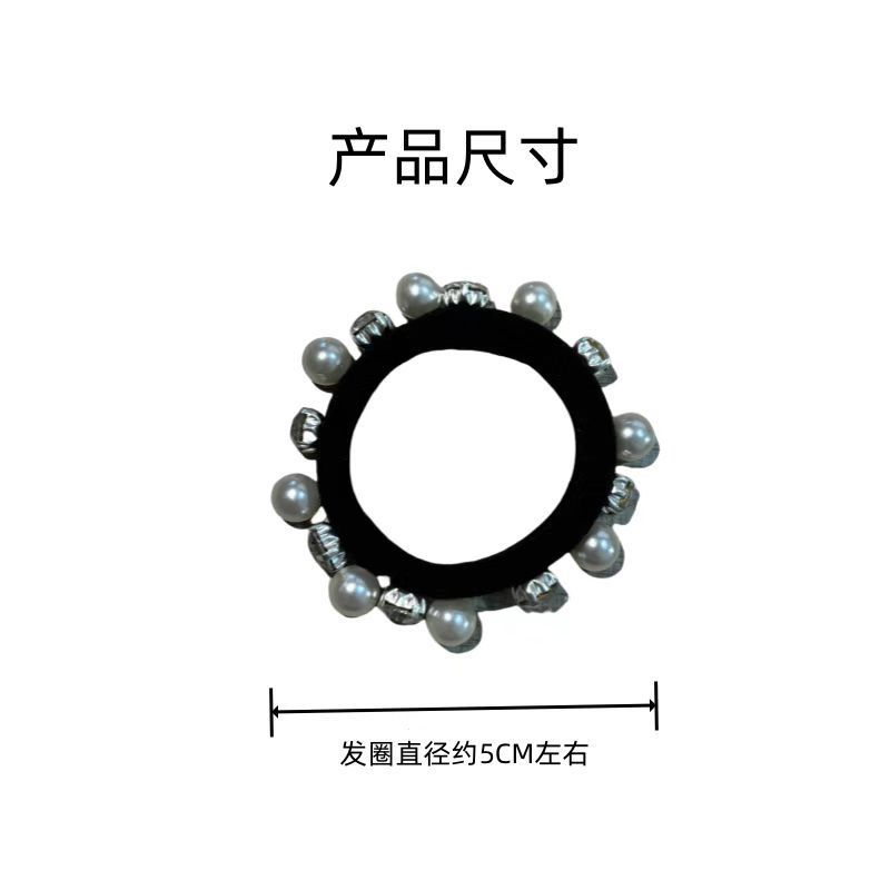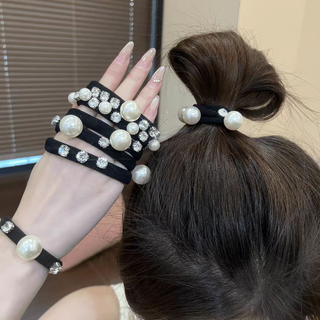 모든 경기 모조 다이아몬드 진주 헤어 링 높은 탄성 내구성 포니 테일 헤드 로프 프랑스 새로운 가벼운 고급 가죽 밴드 헤어 로프 헤드 드레스