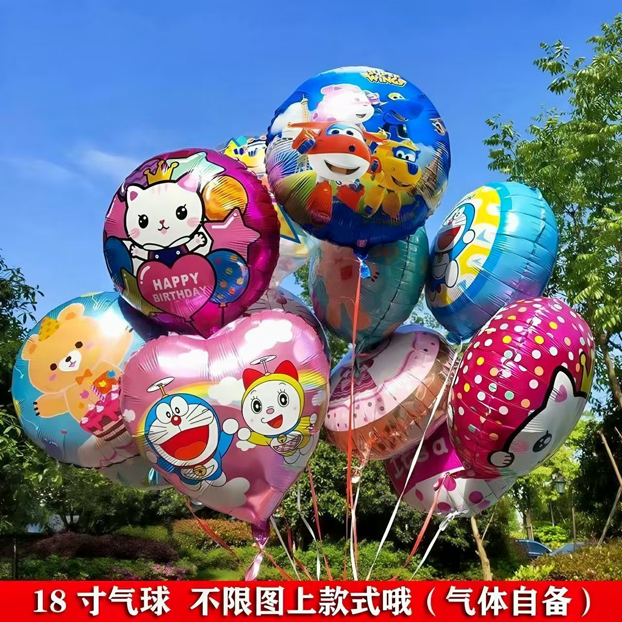 헬륨 알루미늄 필름 라운드 풍선을 들어 올리는 아기 떠 다니는 만화 풍선 공원 광장 스톨 어린이스토어 가기