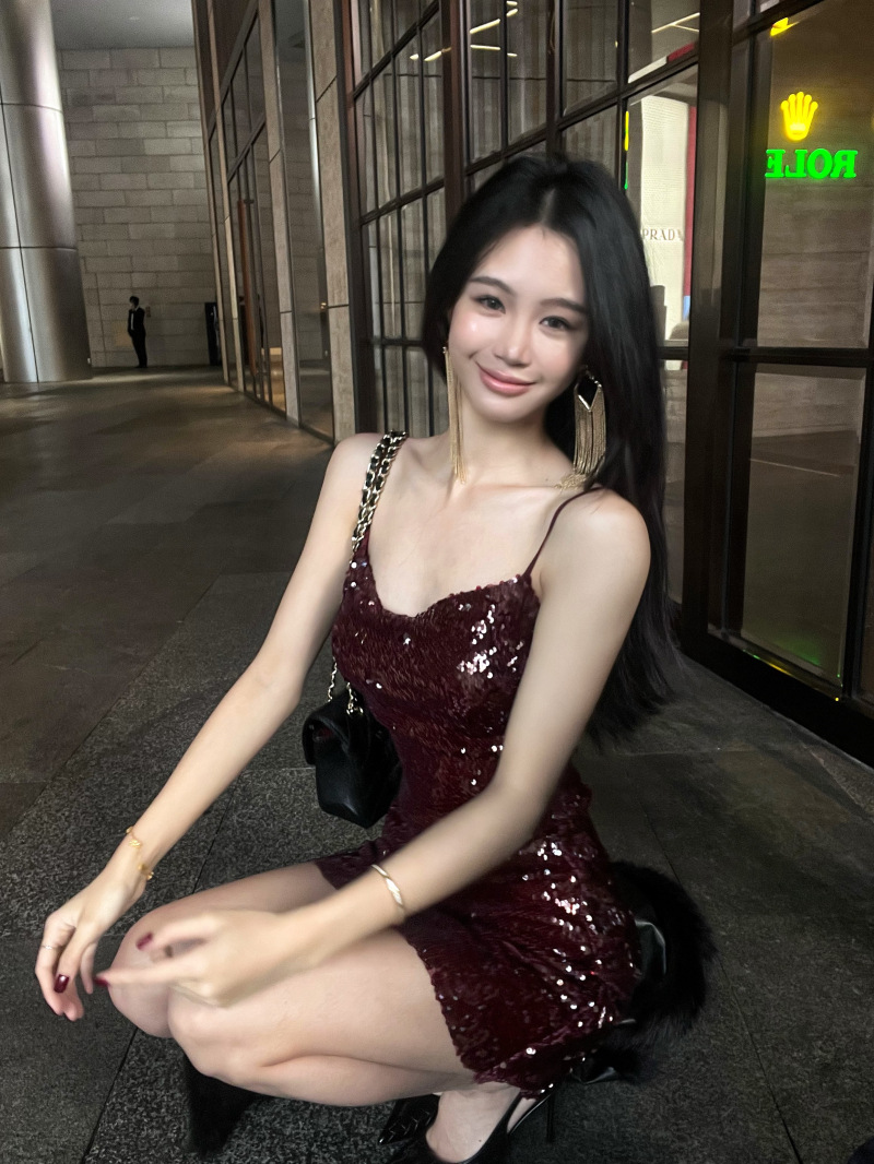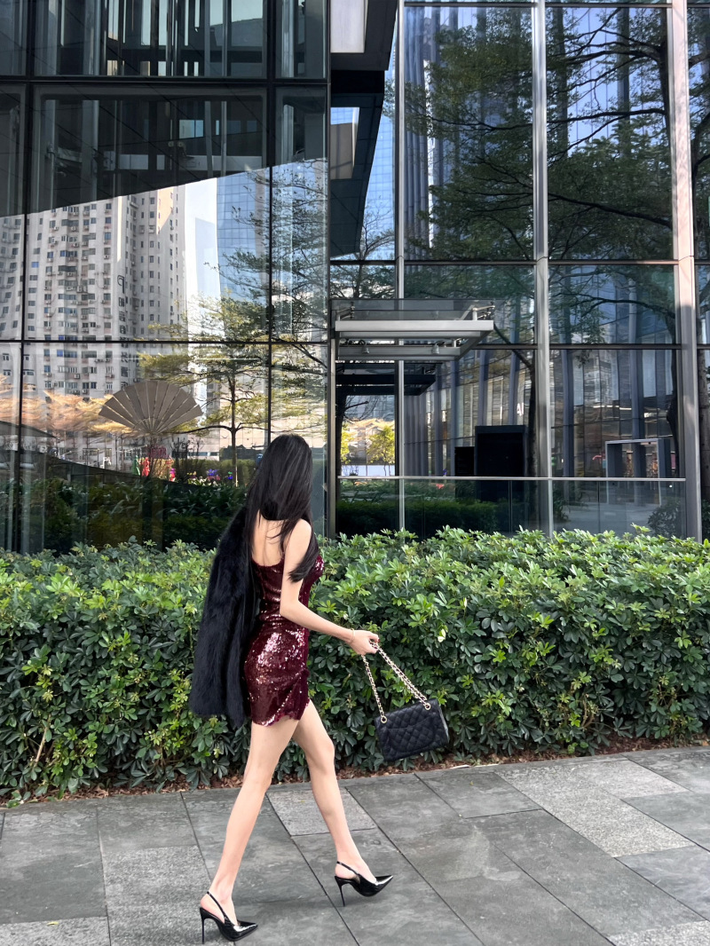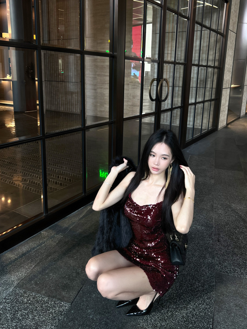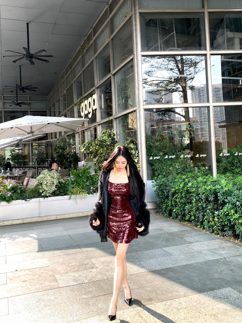 버건디 스퀸 슬링 원피스 여성용 봄 하이 엔드 슬림 핏 원피스 스커트 순수 허리 감싼 힙합 스커트스토어 가기