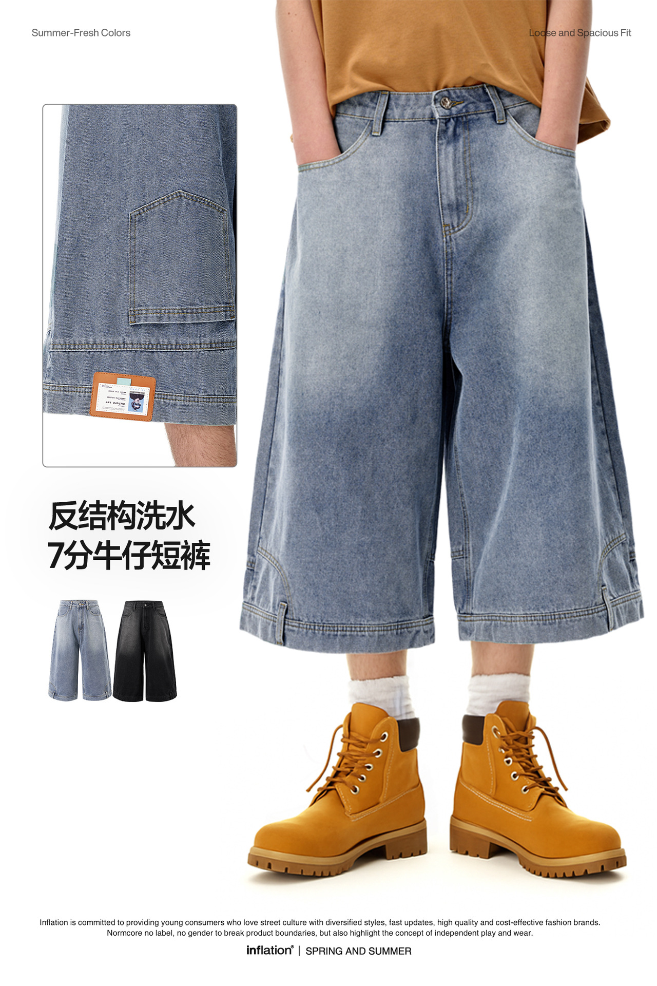 Jie Zhan 남성복 | 반대로 구조 세척 7 점 데님 반바지 봄/여름 2025 새로운 거리 조수 브랜드 스트레이트 바지 남성스토어 가기