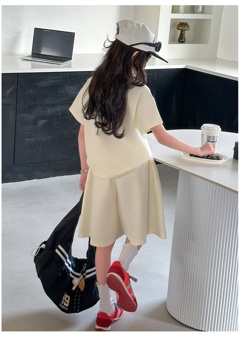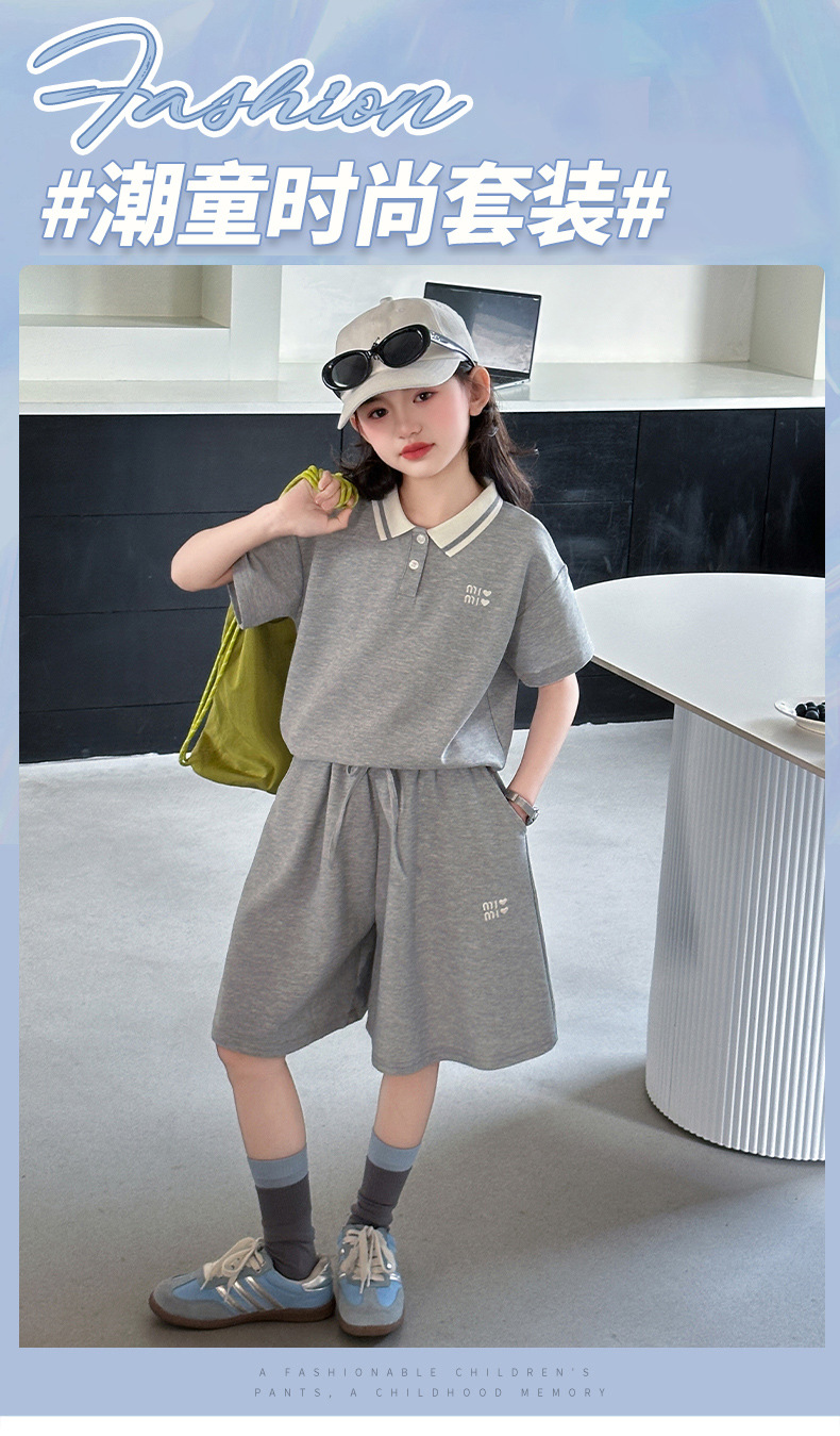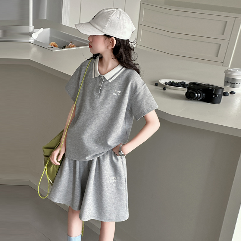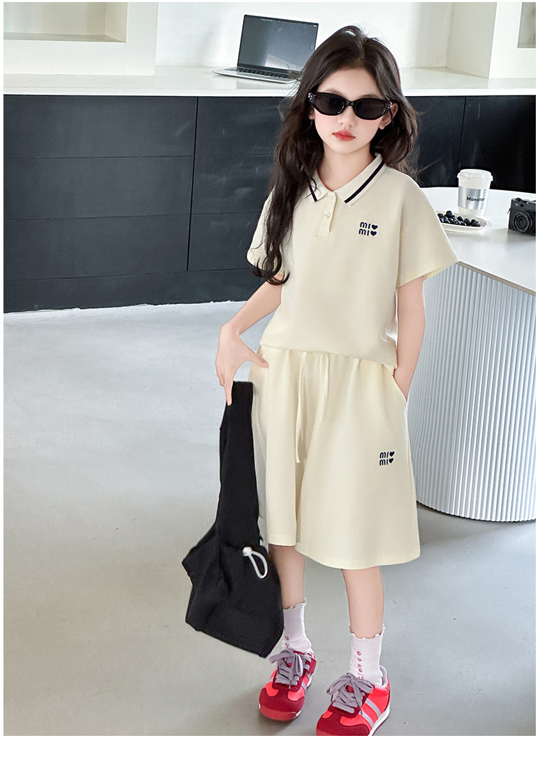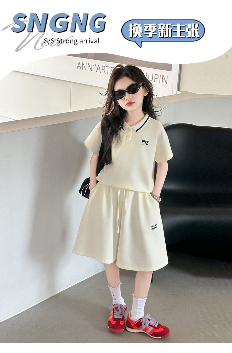 소녀 세트 여름 2025 새로운 중학교 소녀 아름다운 착용 소녀의 봄과 여름 폴로 셔츠 투피스 세트스토어 가기