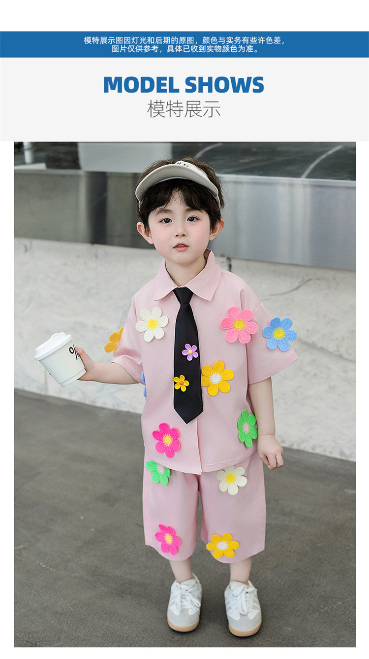 소년 여름 반팔 양복 아동복 넥타이 셔츠 3 피스 세트 유치원 공연 의류 졸업 사진 클래스 유니폼 유행