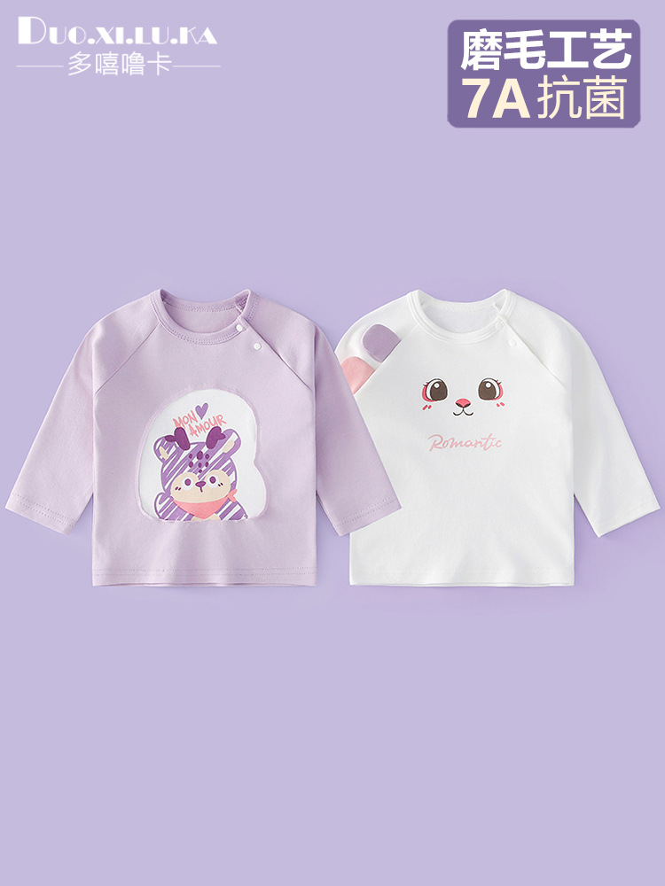 소년 소녀를위한 신생아 옷 봄과 가을 긴팔 티셔츠 순수한면 아동베이스 셔츠 아기의 서양식 만화 탑 A스토어 가기