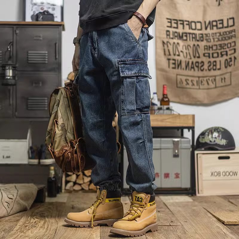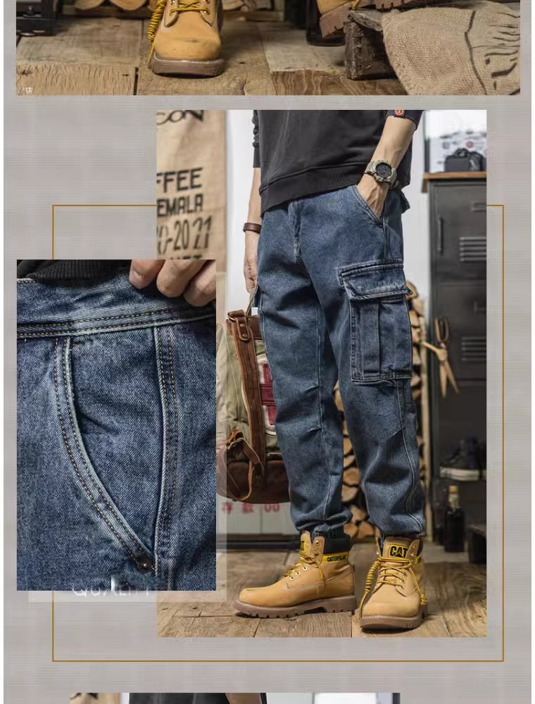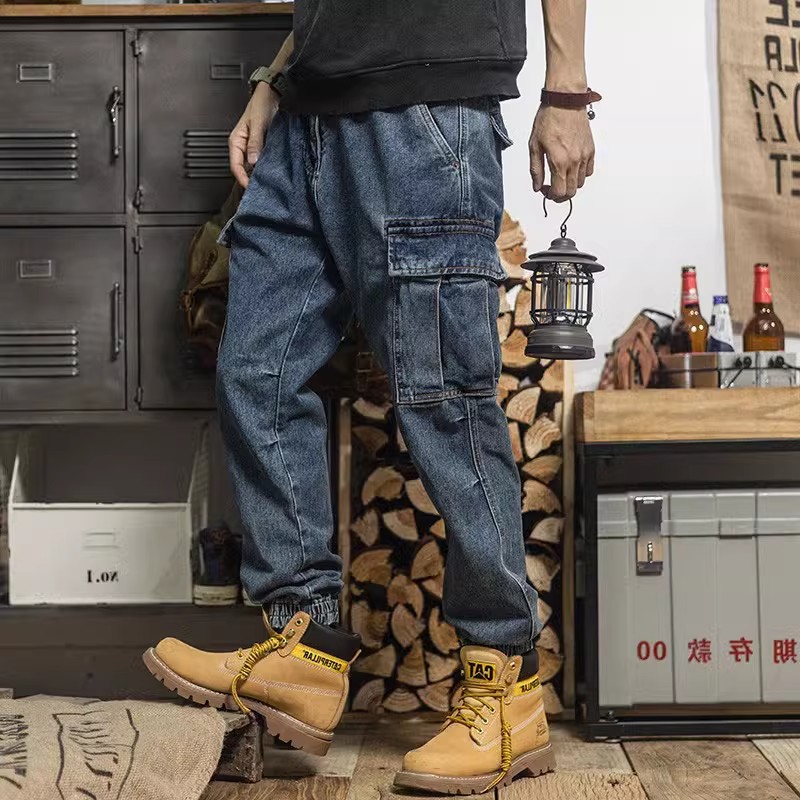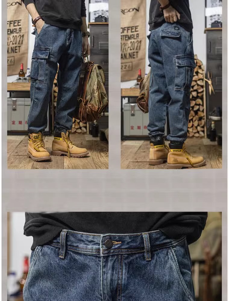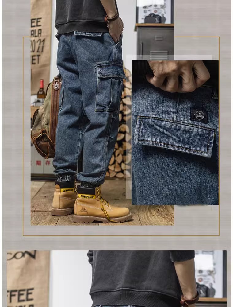 헤비급 아메리칸 레트로 하렘 워크웨어 청바지 루즈 테이퍼드 멀티 포켓 캐주얼 스트레이트 레그 레깅스 남성용스토어 가기