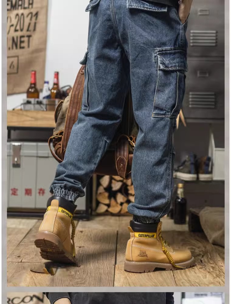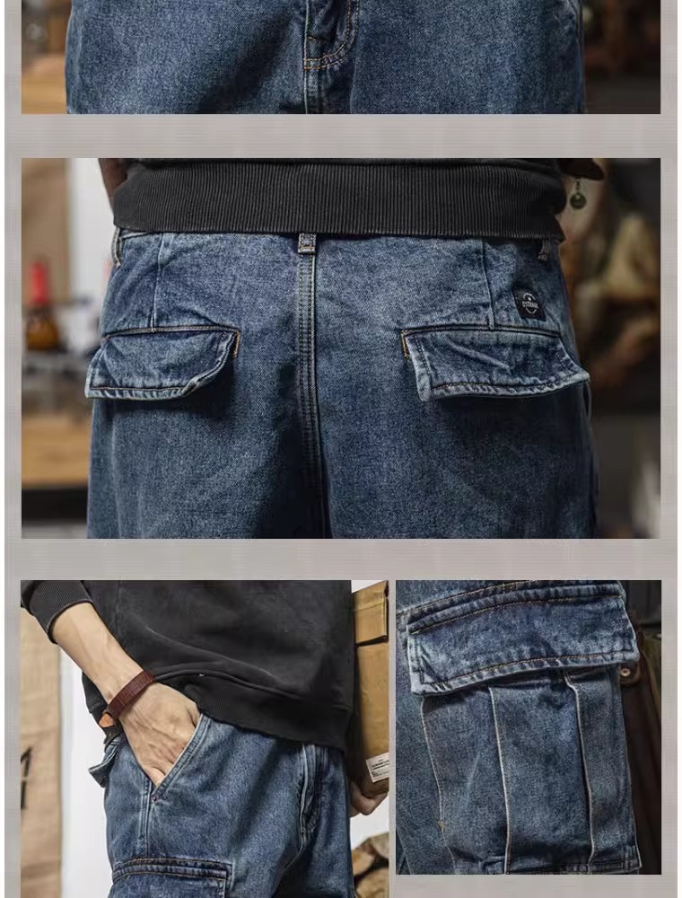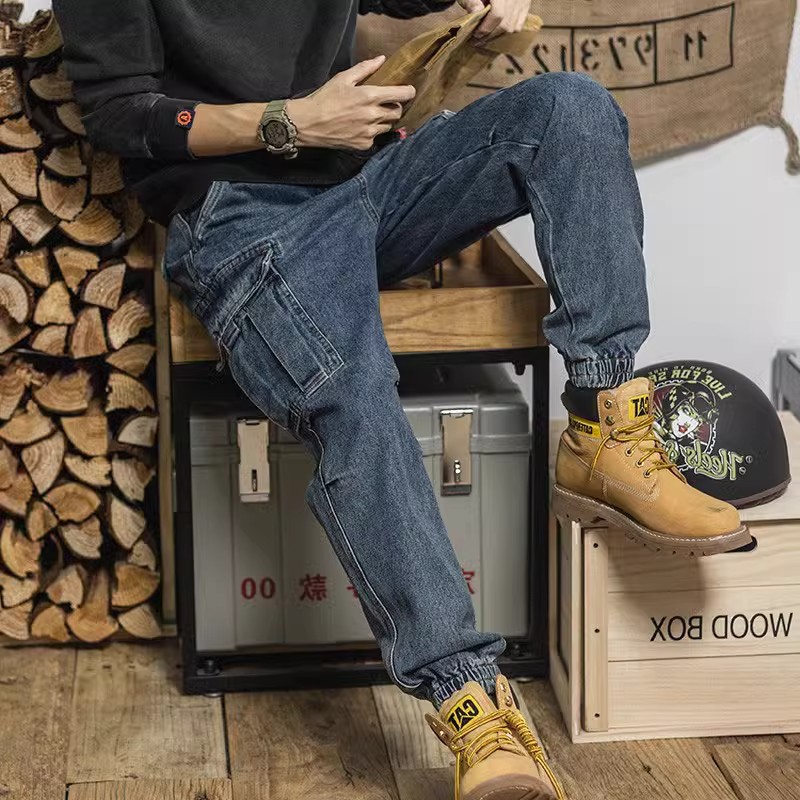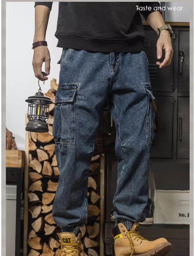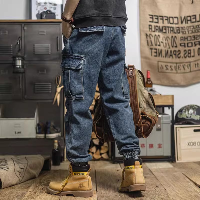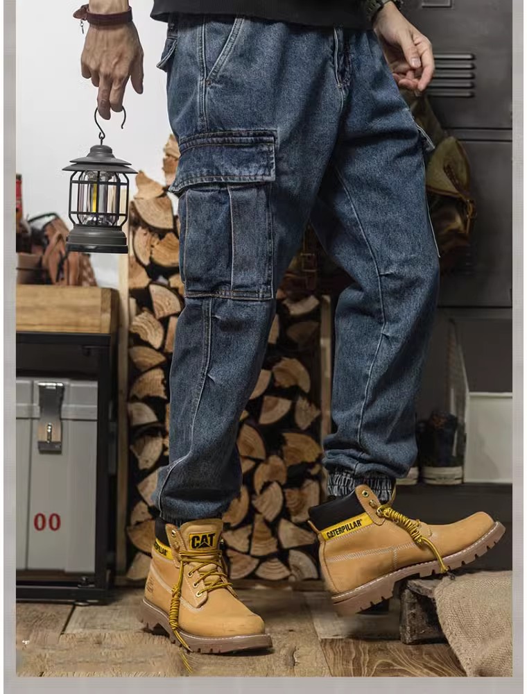 헤비급 아메리칸 레트로 하렘 워크웨어 청바지 루즈 테이퍼드 멀티 포켓 캐주얼 스트레이트 레그 레깅스 남성용스토어 가기