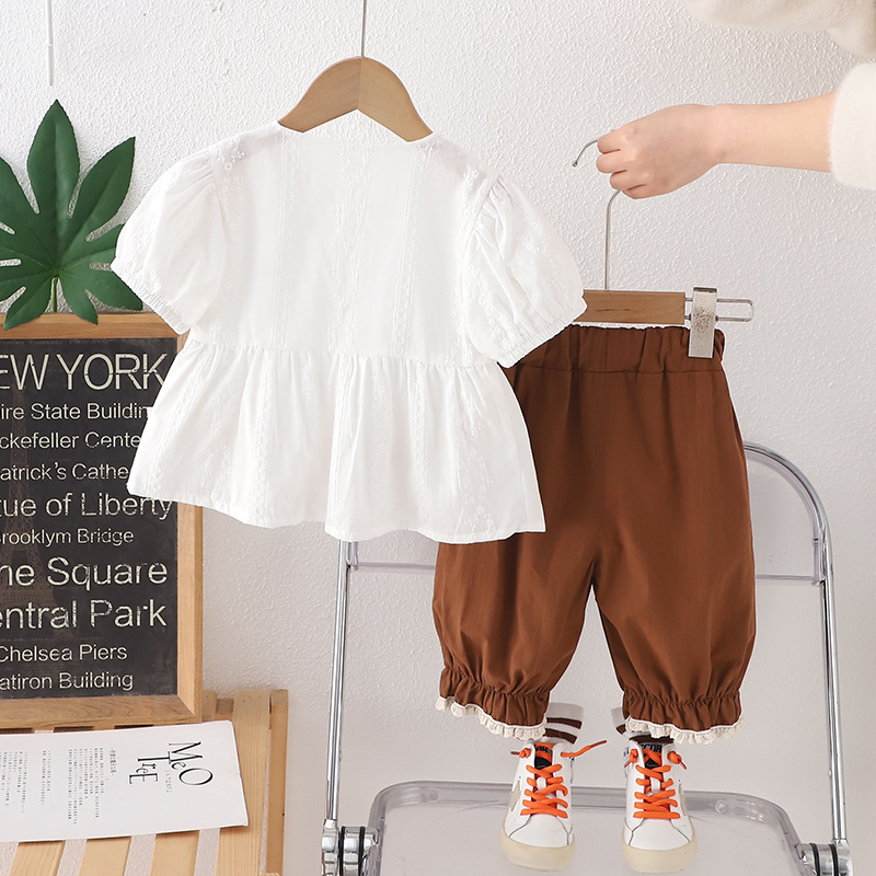 여자 여름 옷 세트 새로운 유행 1-3-5 세 6 여자 아기 여름 옷 어린이 반팔 투피스 세트스토어 가기