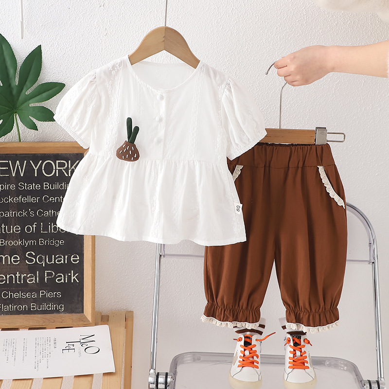 여자 여름 옷 세트 새로운 유행 1-3-5 세 6 여자 아기 여름 옷 어린이 반팔 투피스 세트