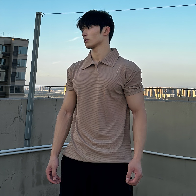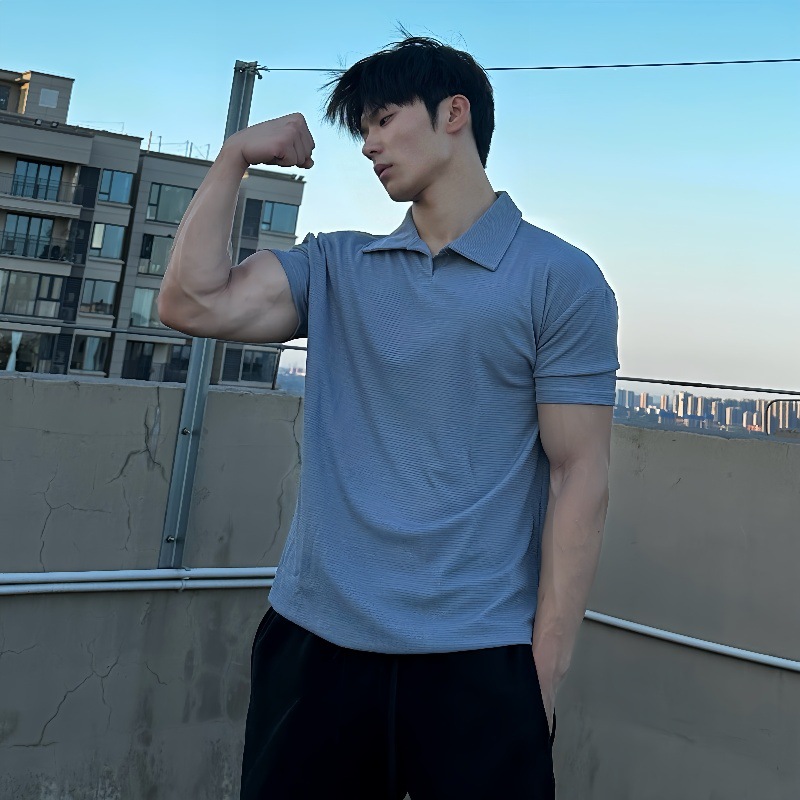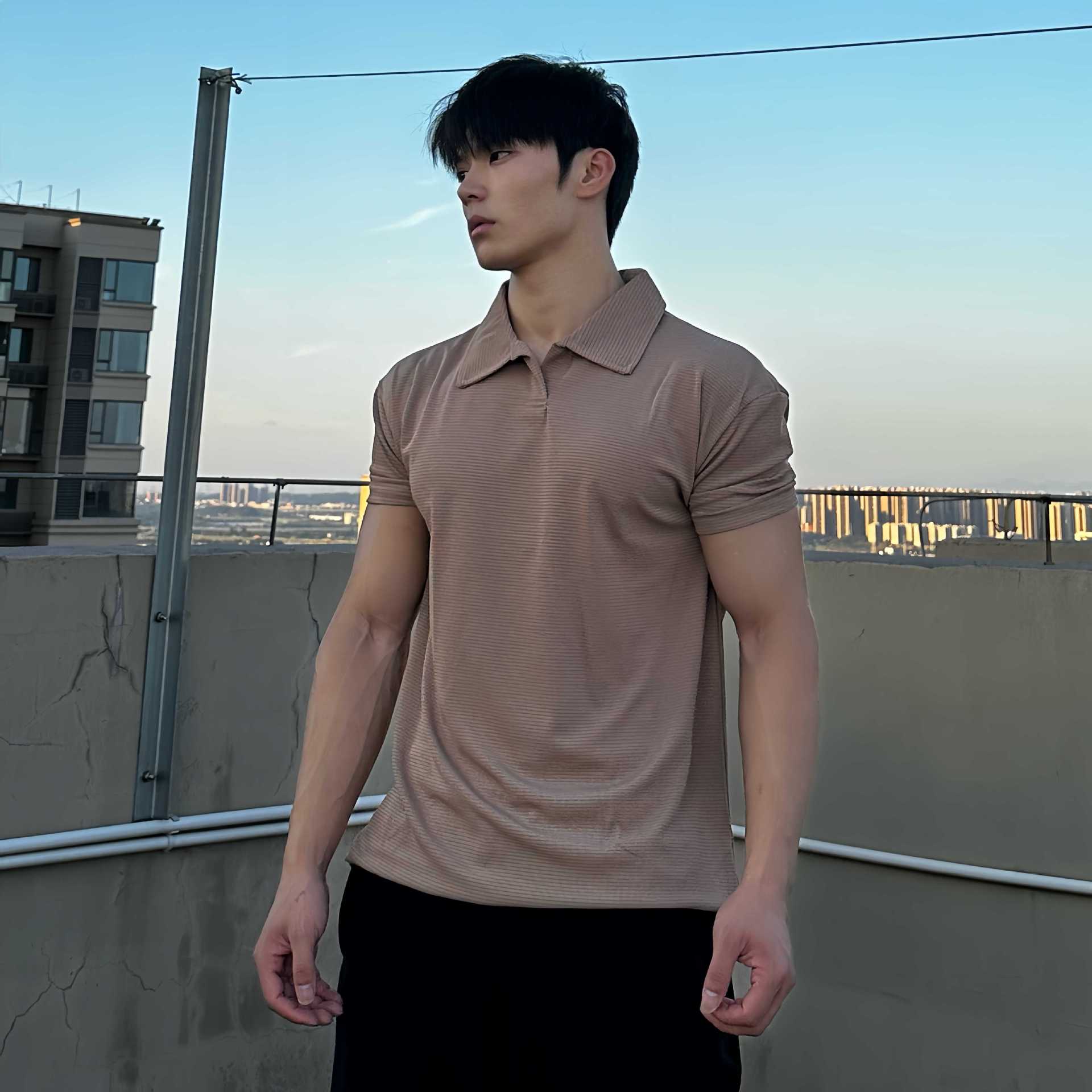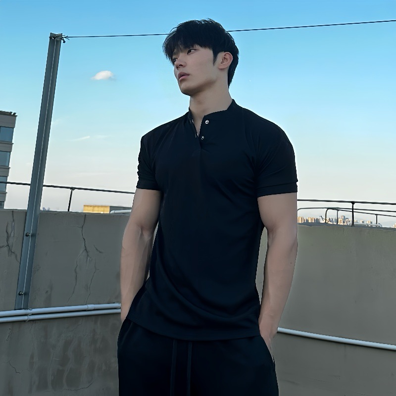 여름 커프 새로운 중국 폴로 셔츠 반팔 헨리 칼라 탄성 빠른 건조 통기성 스포츠 피트니스 남성용 티셔츠