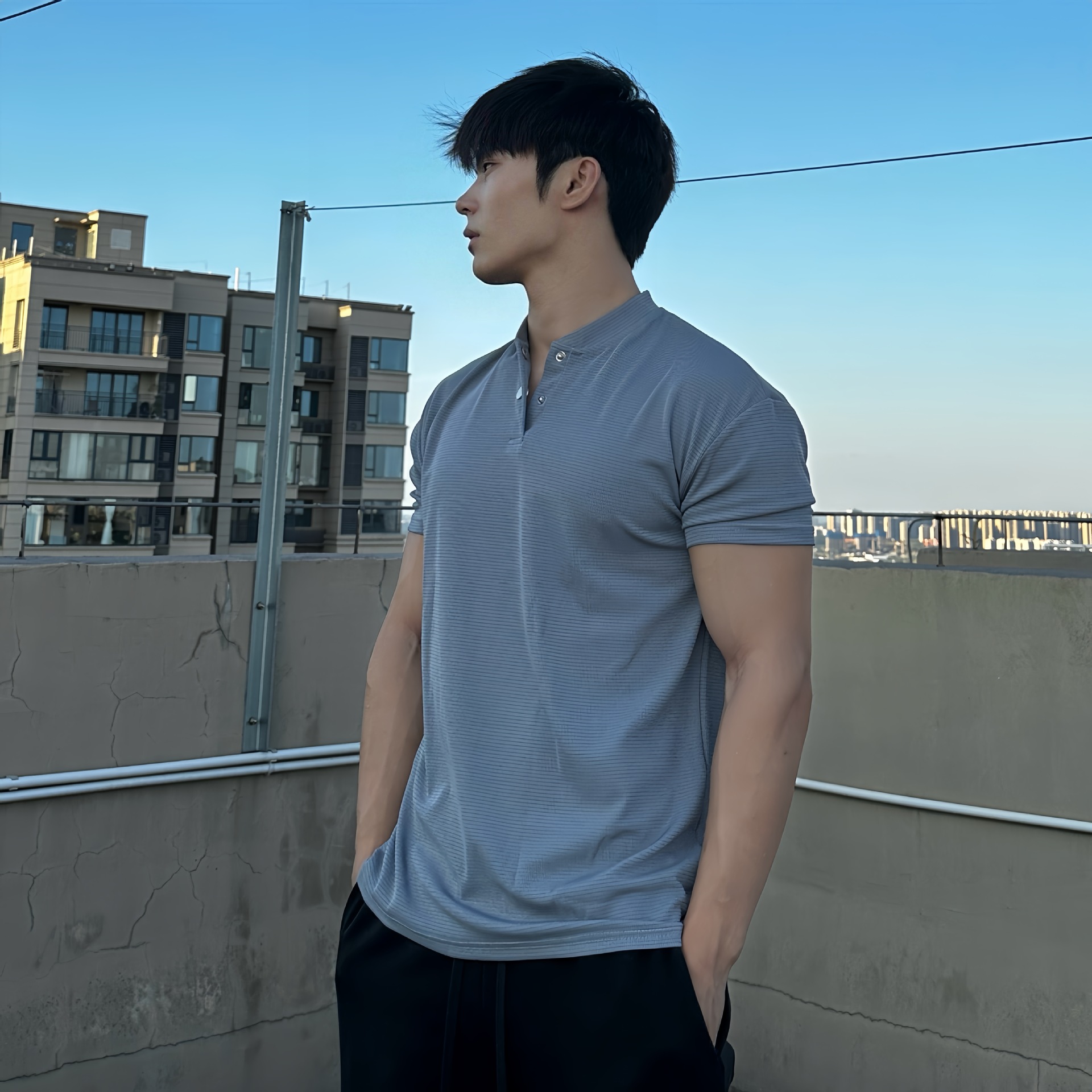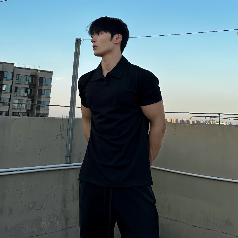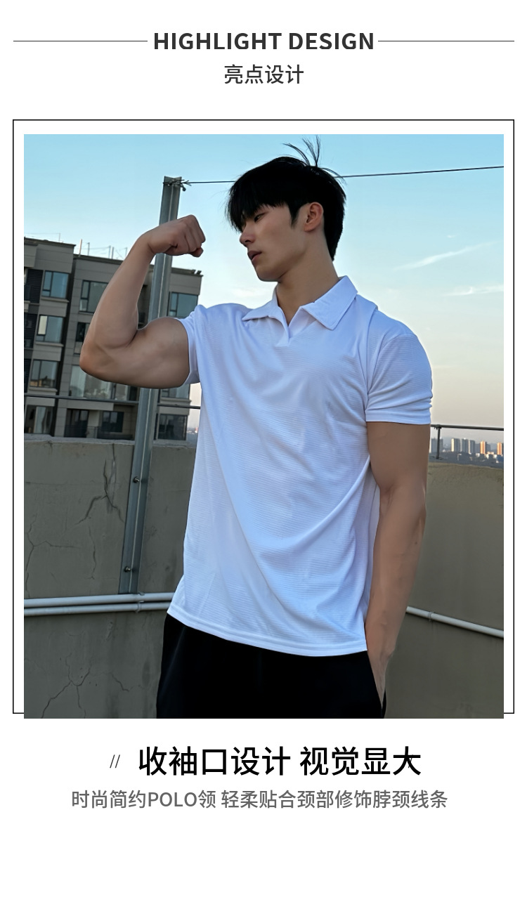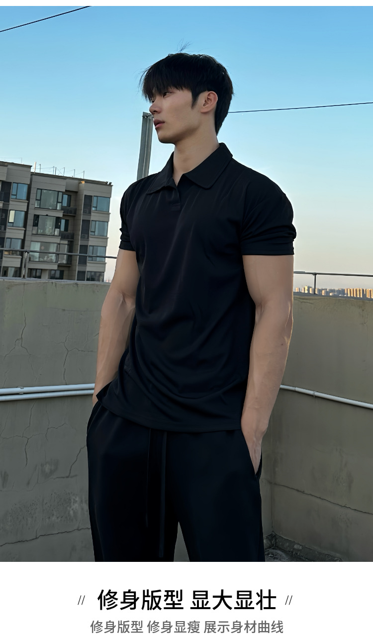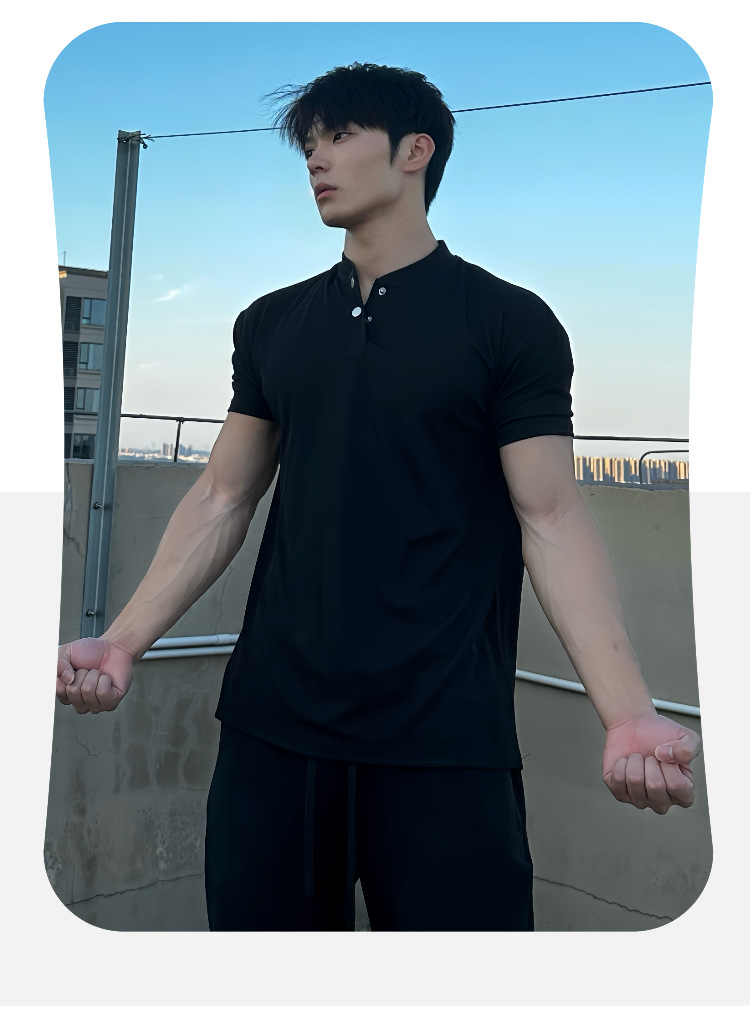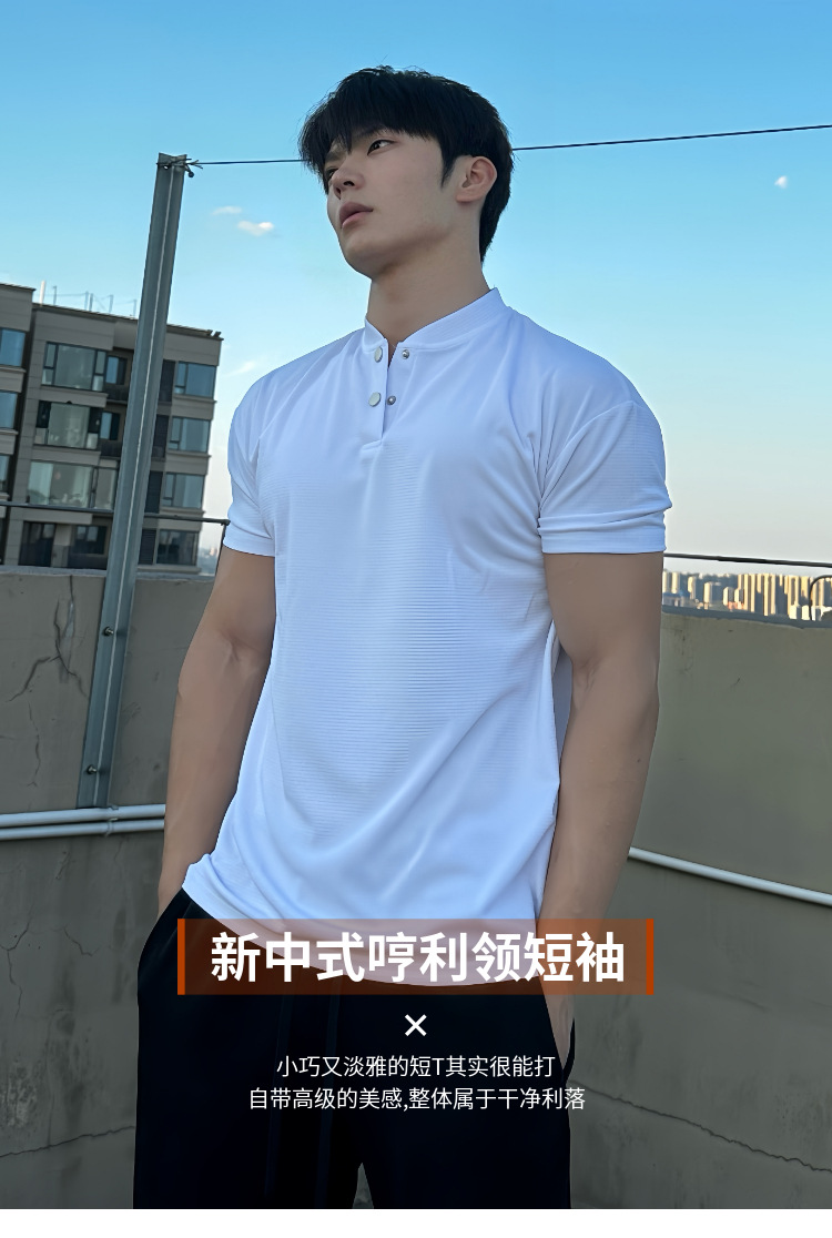 夏季收袖口新中式POLO衫短袖亨利领弹力快干透气运动健身男士T恤