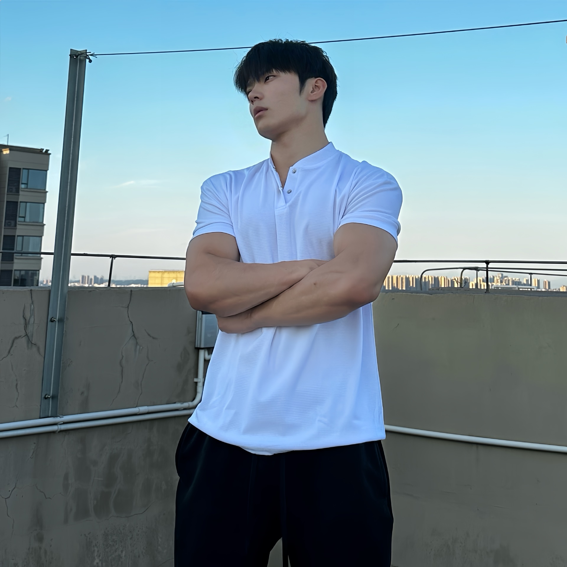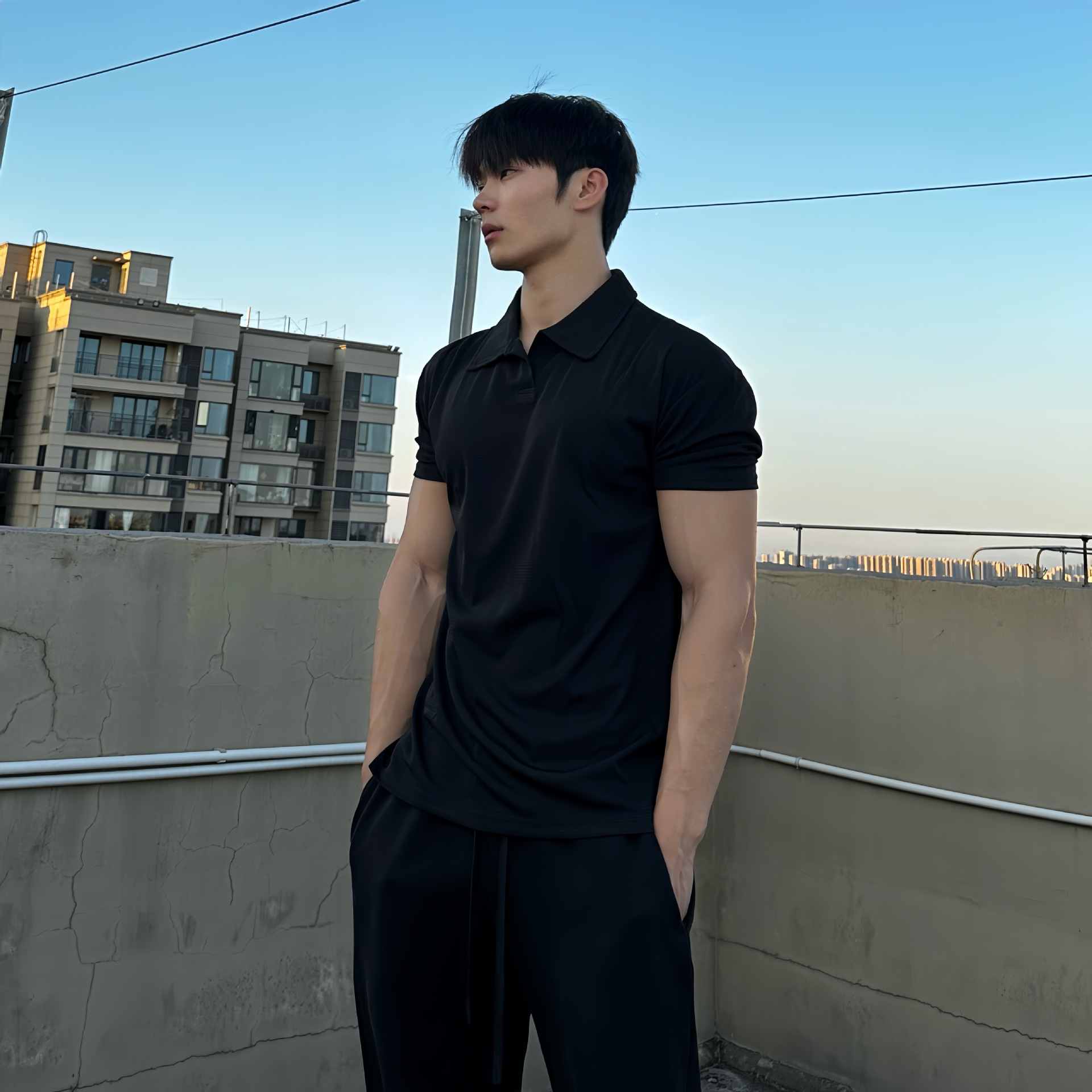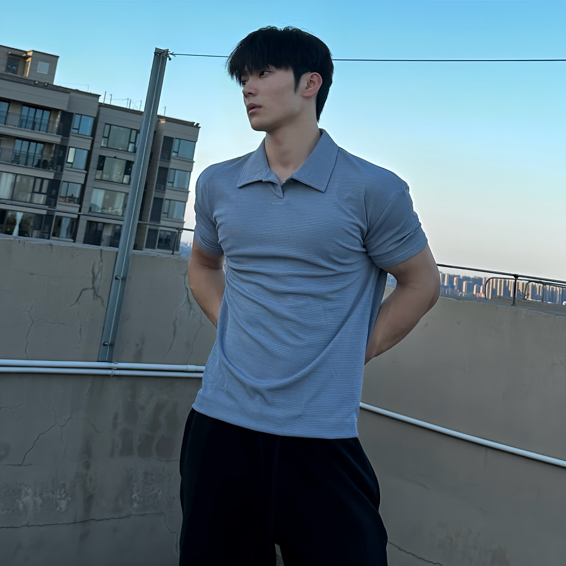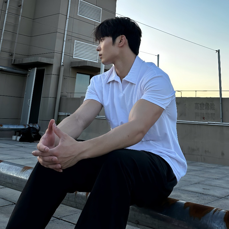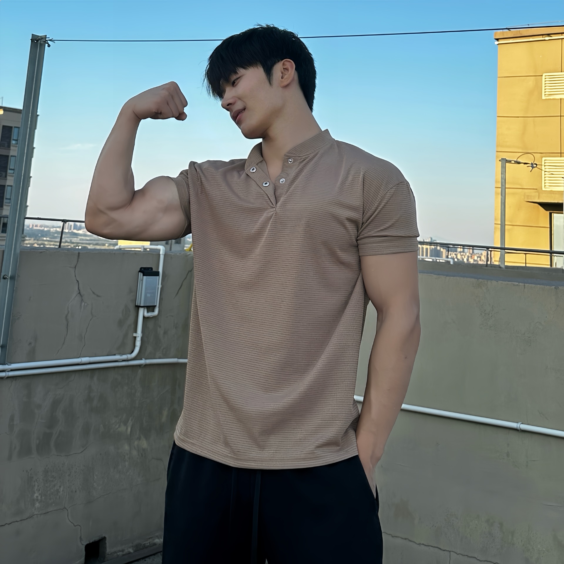 夏季收袖口新中式POLO衫短袖亨利领弹力快干透气运动健身男士T恤