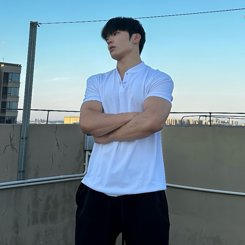 여름 커프 새로운 중국 폴로 셔츠 반팔 헨리 칼라 탄성 빠른 건조 통기성 스포츠 피트니스 남성용 티셔츠스토어 가기