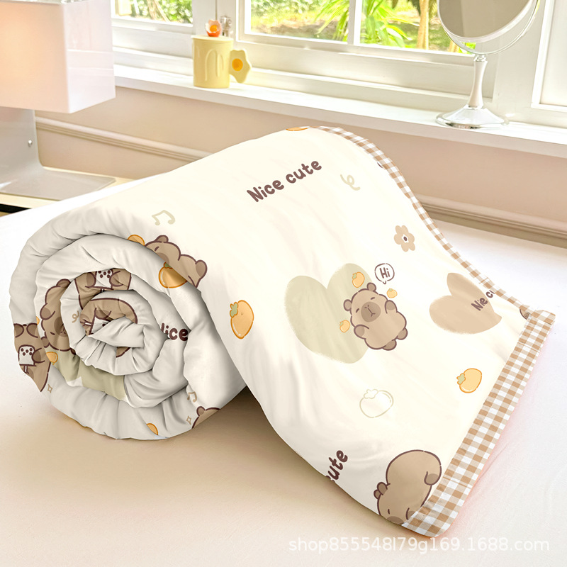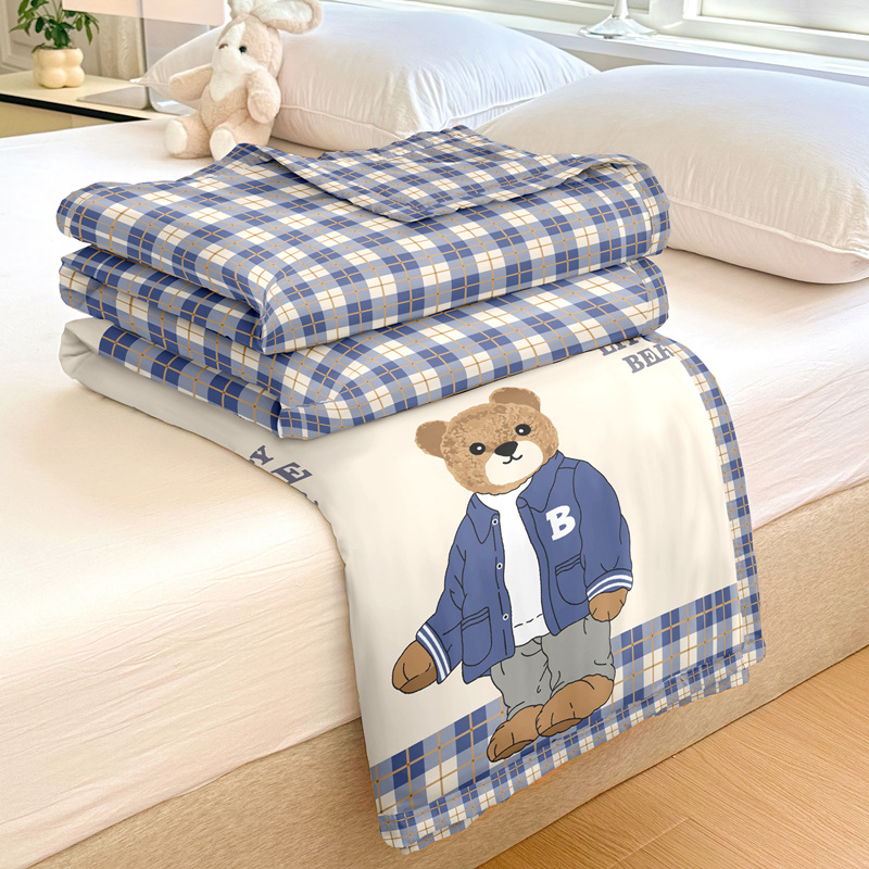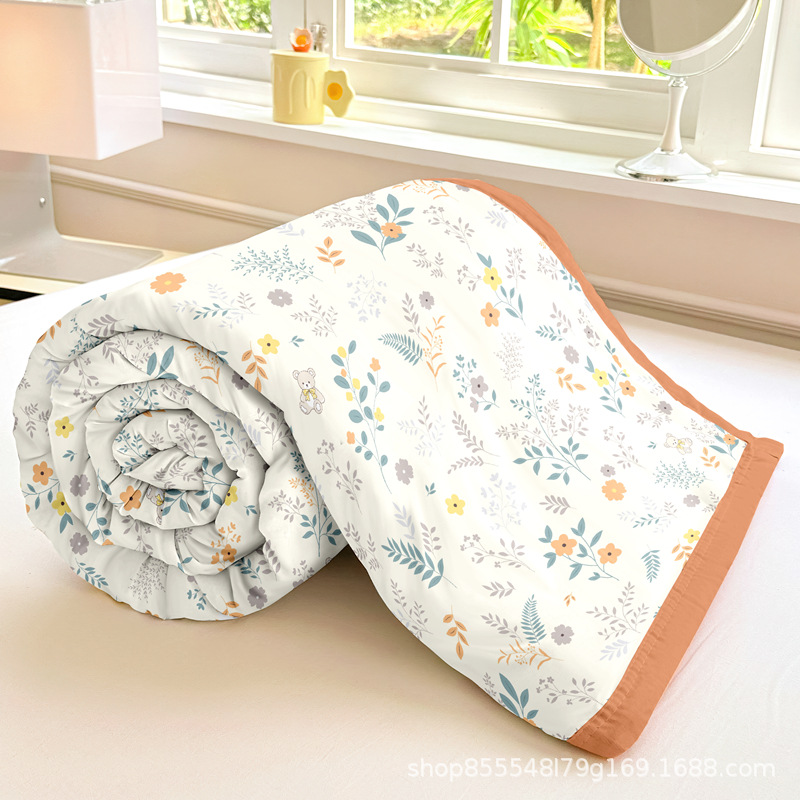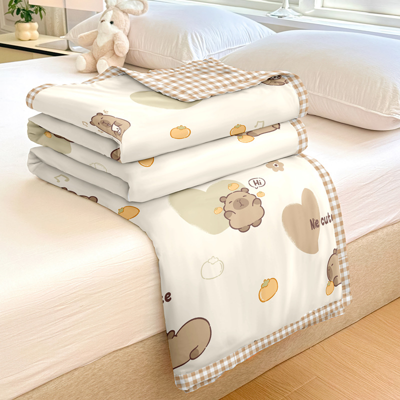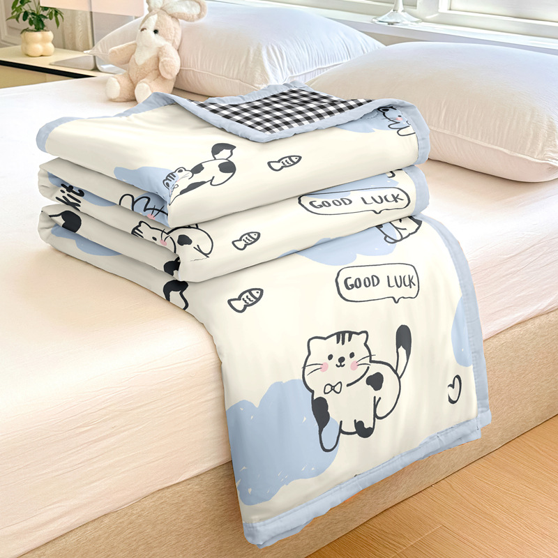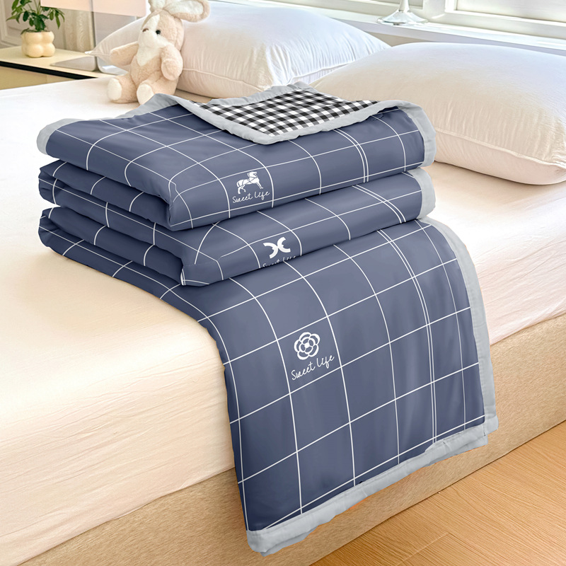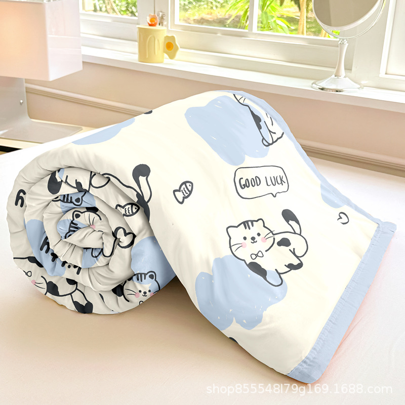 에어컨 이불, 작은 이불, 낮잠, 세탁기로 세탁 가능한 여름 시원한 이불, 얇은 순면 아동용 싱글 더블 여름 이불