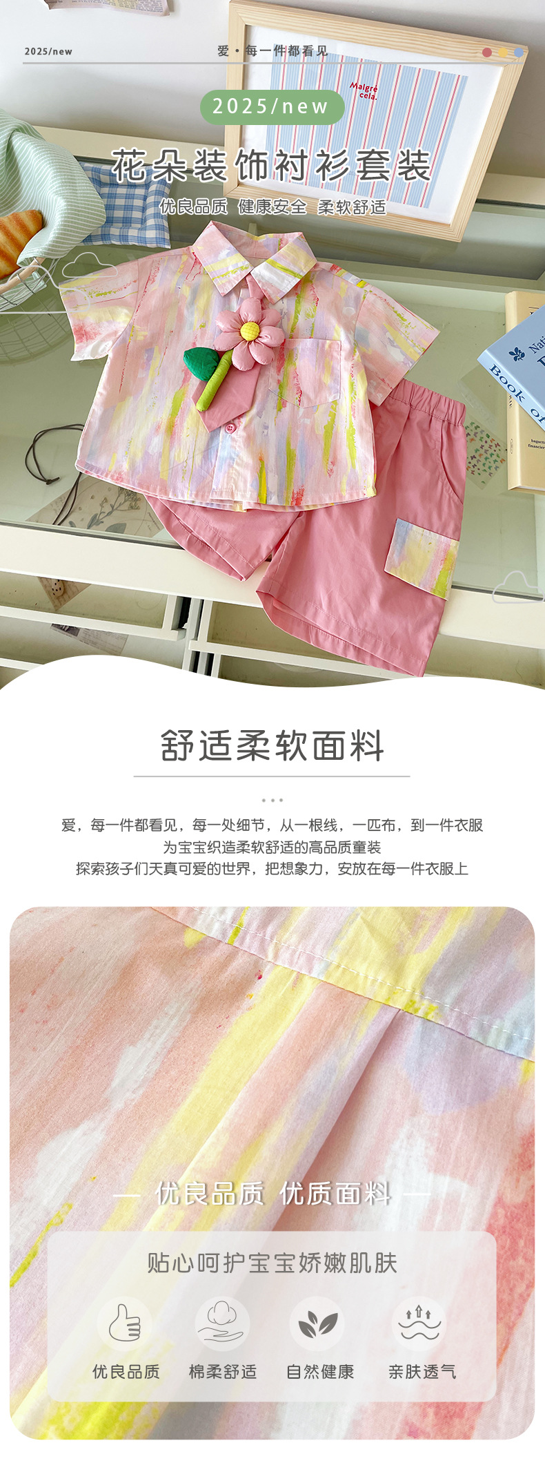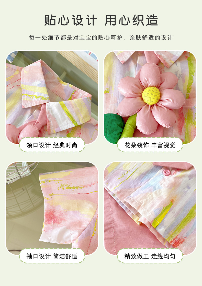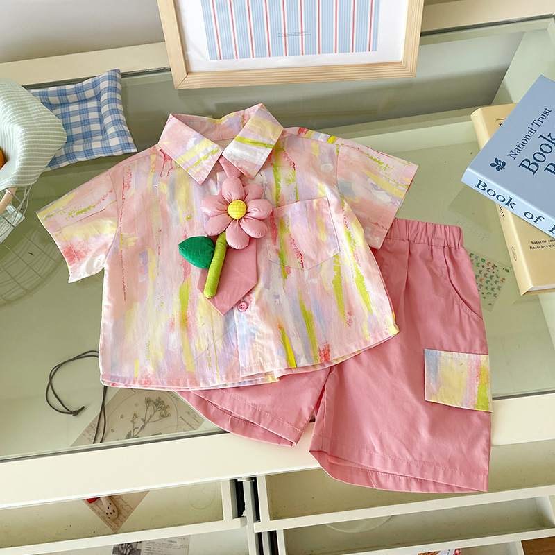 XT253045 어린이 세트 2025 여름 새로운 꽃 넥타이 셔츠 도파민 느슨한 반바지 세트스토어 가기
