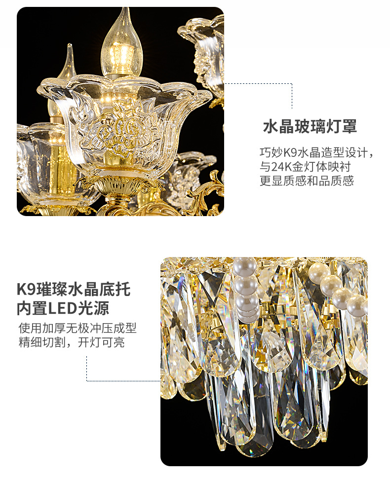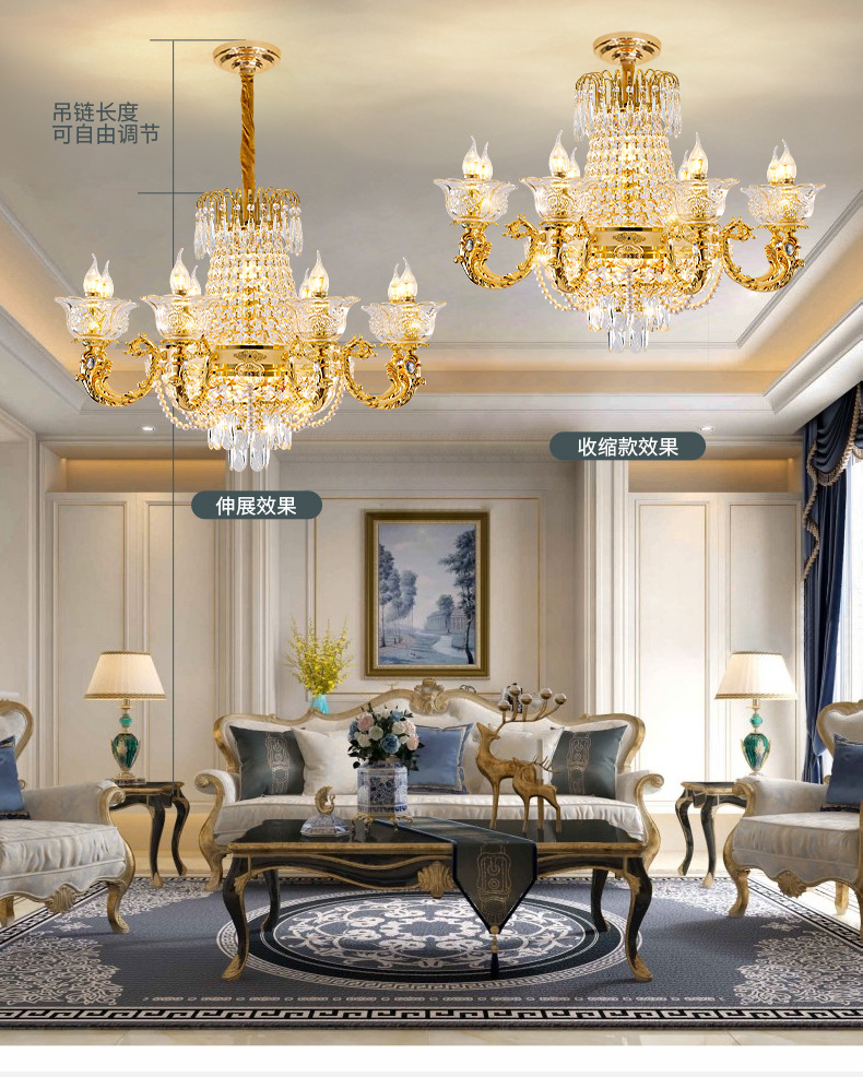 유럽식 샹들리에 하이 엔드 거실 침실 램프 고급 분위기 레스토랑 크리스탈 듀플렉스 빌라 샹들리에 중산 램프