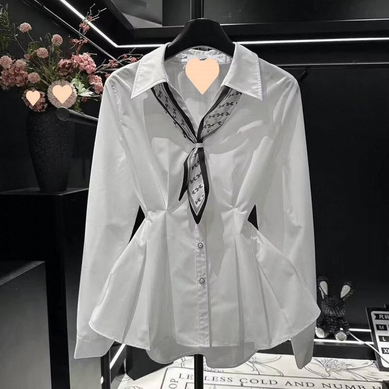 실크 스카프 리본 긴 소매 셔츠 여성의 2025 년 초가을 새로운 하이 엔드 센스 우아한 타이트 허리 슬리밍 셔츠 봄과 가을 탑스토어 가기