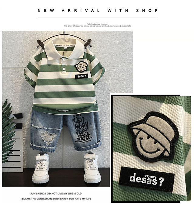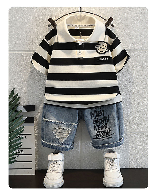 소년 줄무늬 반팔 세트 여름 얇은 어린이 2024 새로운 아기 여름 얇은 폴로 셔츠 옷스토어 가기