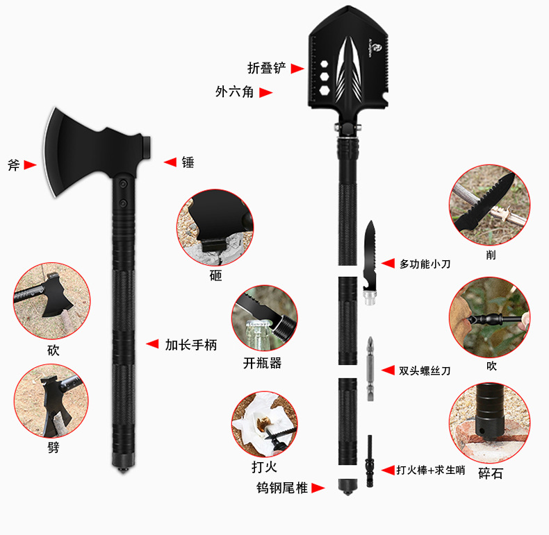 다기능 삽과 도끼 도구 망간강 필드 삽 엔지니어 삽 접이식 삽 야외 용품 낚시 자동차 캠핑스토어 가기