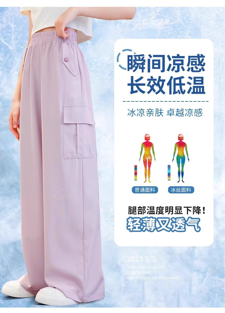 소녀 안티 모기 바지 여름 얇은 어린이 아이스 실크 스포츠 바지 빠른 건조 바지 여름 2025 새로운 대형 어린이 바지스토어 가기