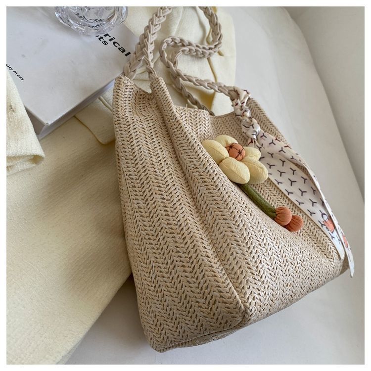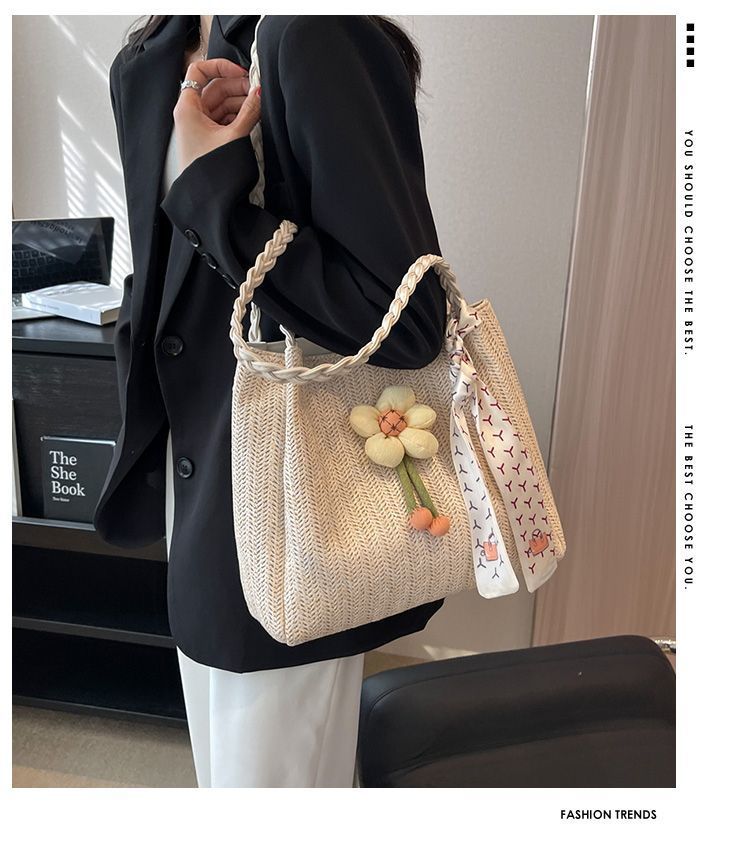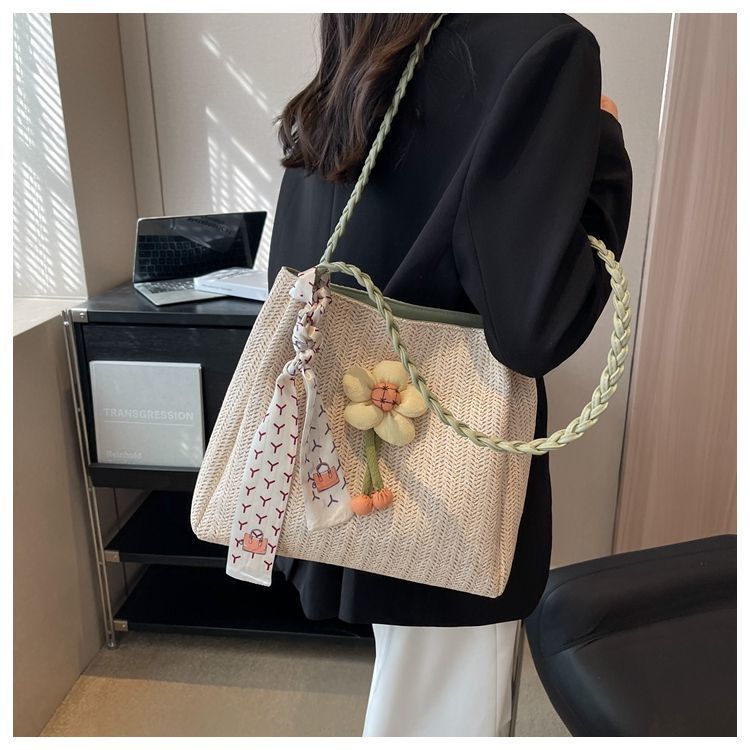 ∝ [2413 명 컬렉션] 짠 밀짚 가방 여성의 2024 새로운 조커 대용량 숄더백 작업 패스