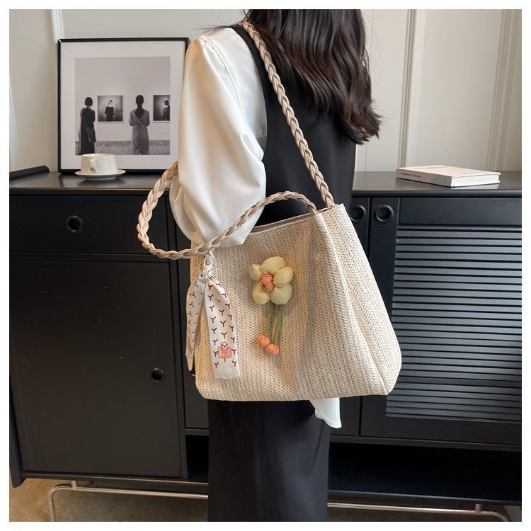 ∝ [2413 명 컬렉션] 짠 밀짚 가방 여성의 2024 새로운 조커 대용량 숄더백 작업 패스스토어 가기